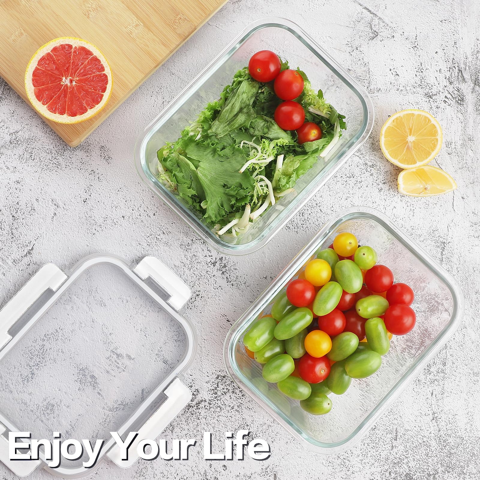 - [Leak Proof Design] HOMBERKING glass storage containers use the improved locking lid, the design is easier to open and shut. And the snap lock and silicone seal help to improve the leak-proof performance of our containers, preventing the food from odor and maintain the original deliciousness of the food, which will be better to keep fresh than others. Keep your dining table and backpack clean.
