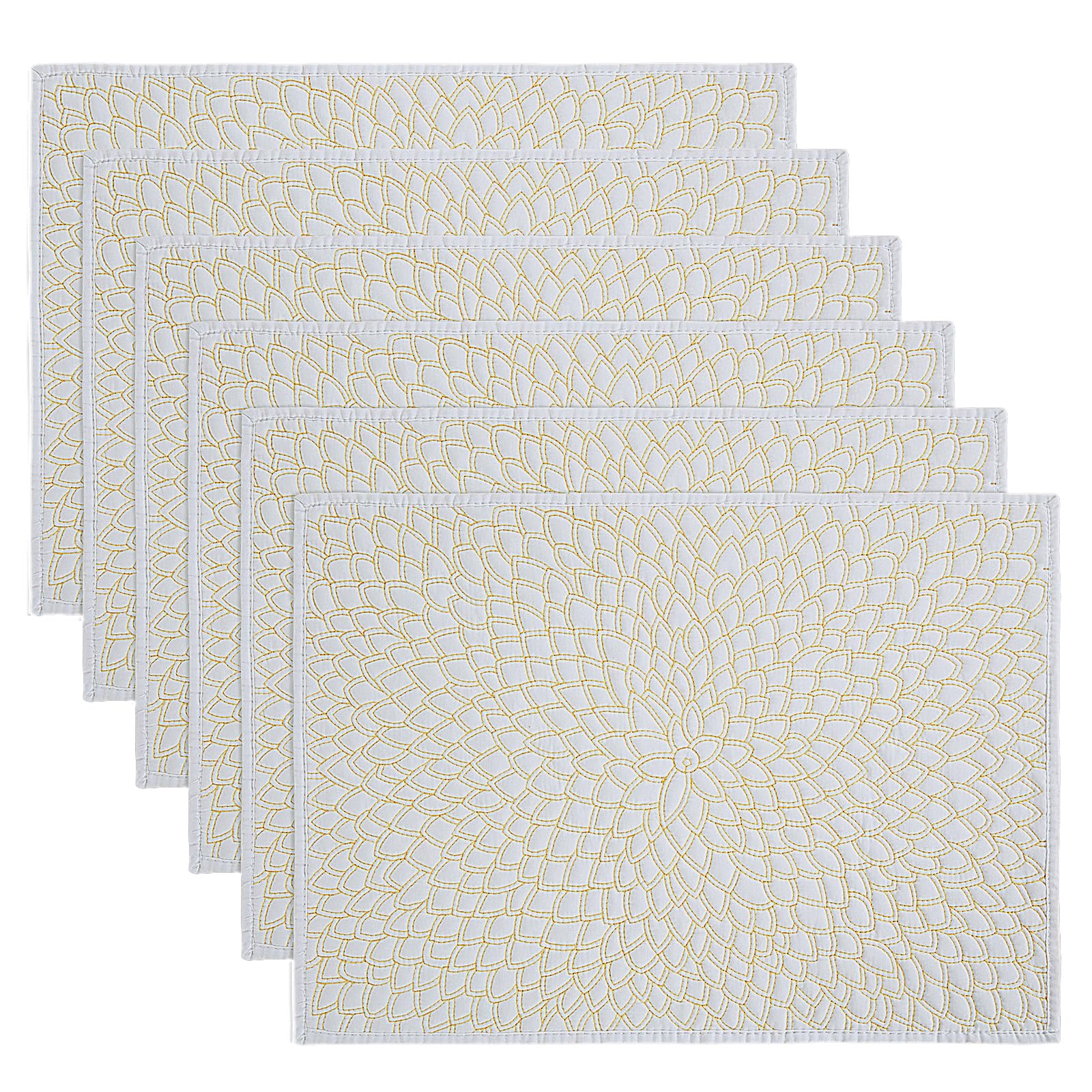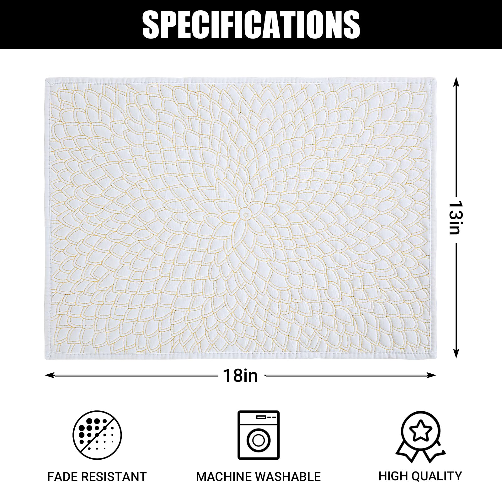Details: HOMBYS Quilted Placemats Set of 6 -13x18 inch, Shiny Quilted Floral Rectangular Table Place Mat for Dining Table,Washable Placemats for Kitchen,Non-Slip Heat Resistant Cloth Placemats