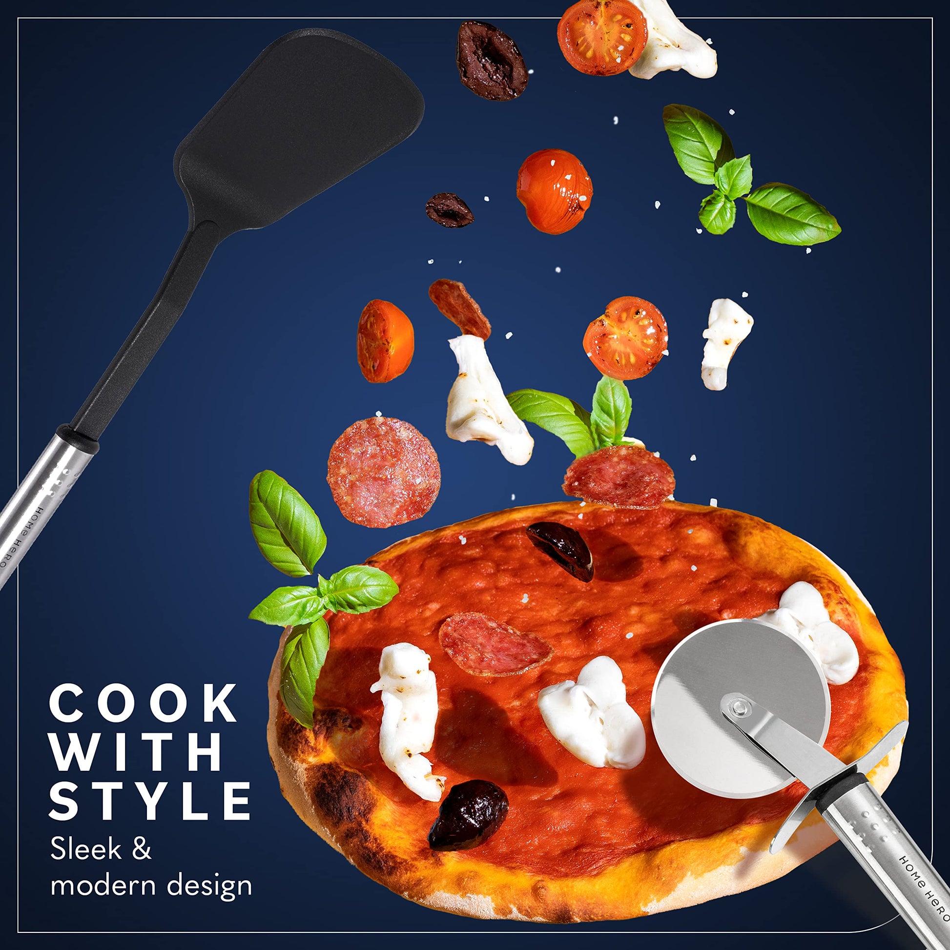 Home Hero 25 Pcs Kitchen Utensils Set - Cooking Utensils Set with Spatula - First Home Essentials Utensil Sets - Household Essentials - Kitchen Gadgets & Kitchen Tool Gift (25 Pcs Set - Black)