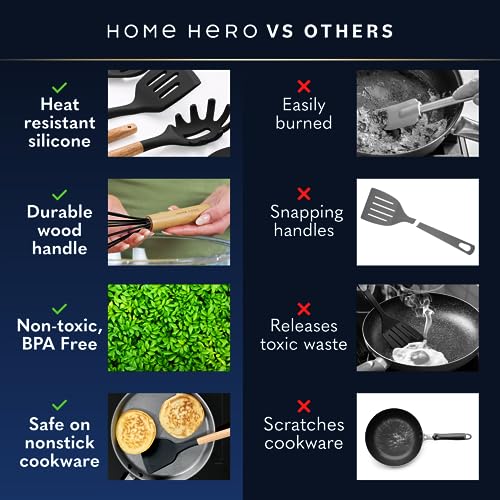 - Quality that Lasts - Say goodbye to flimsy kitchen tools that detach after a few uses. Home Hero's silicone spatula cooking utensils set is made with high-quality silicone and beechwood handles for lasting durability. Plus, wooden handles prevent heat transfer and scalding.