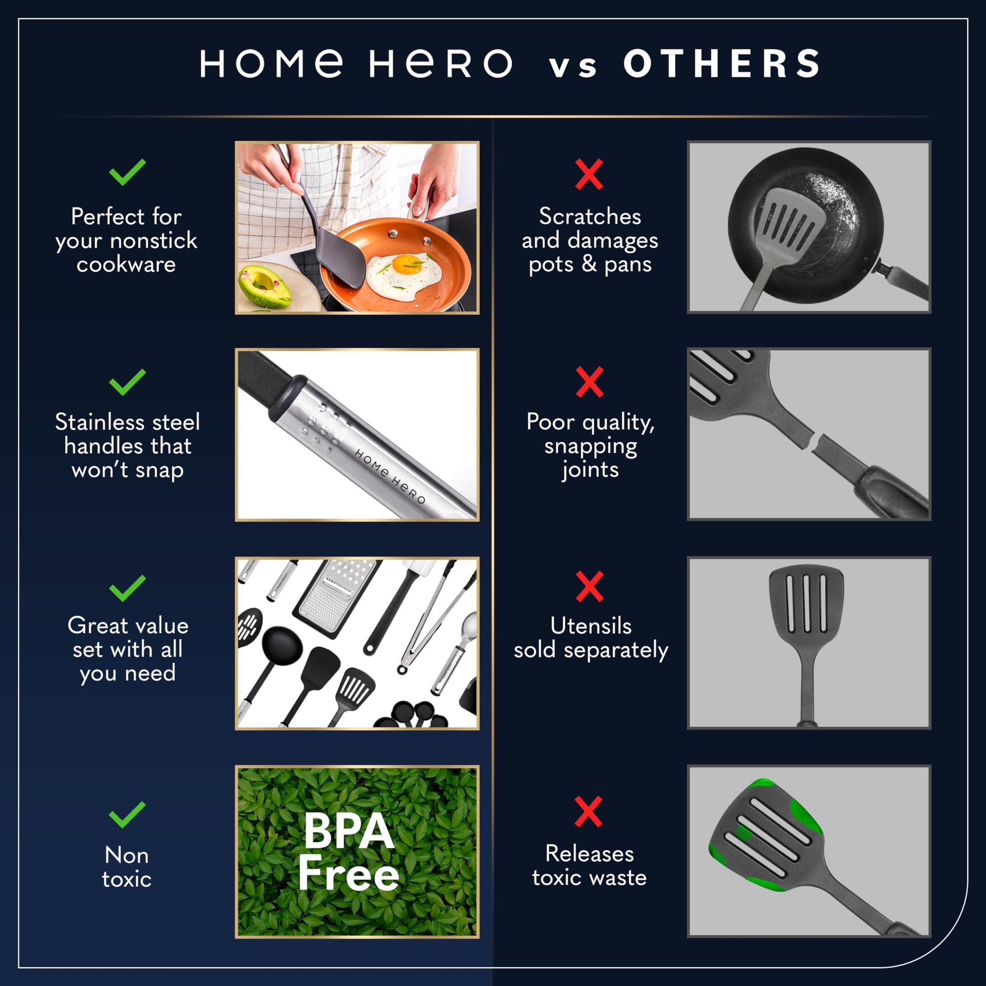 - Customer service - Please, if you have any questions or issues regarding the Home Hero kitchen utensils set please do not hesitate to send the seller a message through Amazon we will respond within 24 hours.