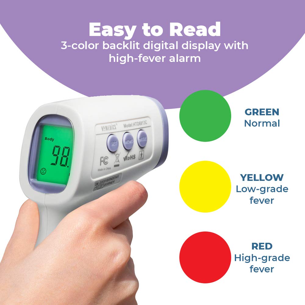 HoMedics Non-Contact Infrared Forehead Thermometer, Clinically Proven Fast Accurate Results, High-Fever Alert with 4-in-1 Readings