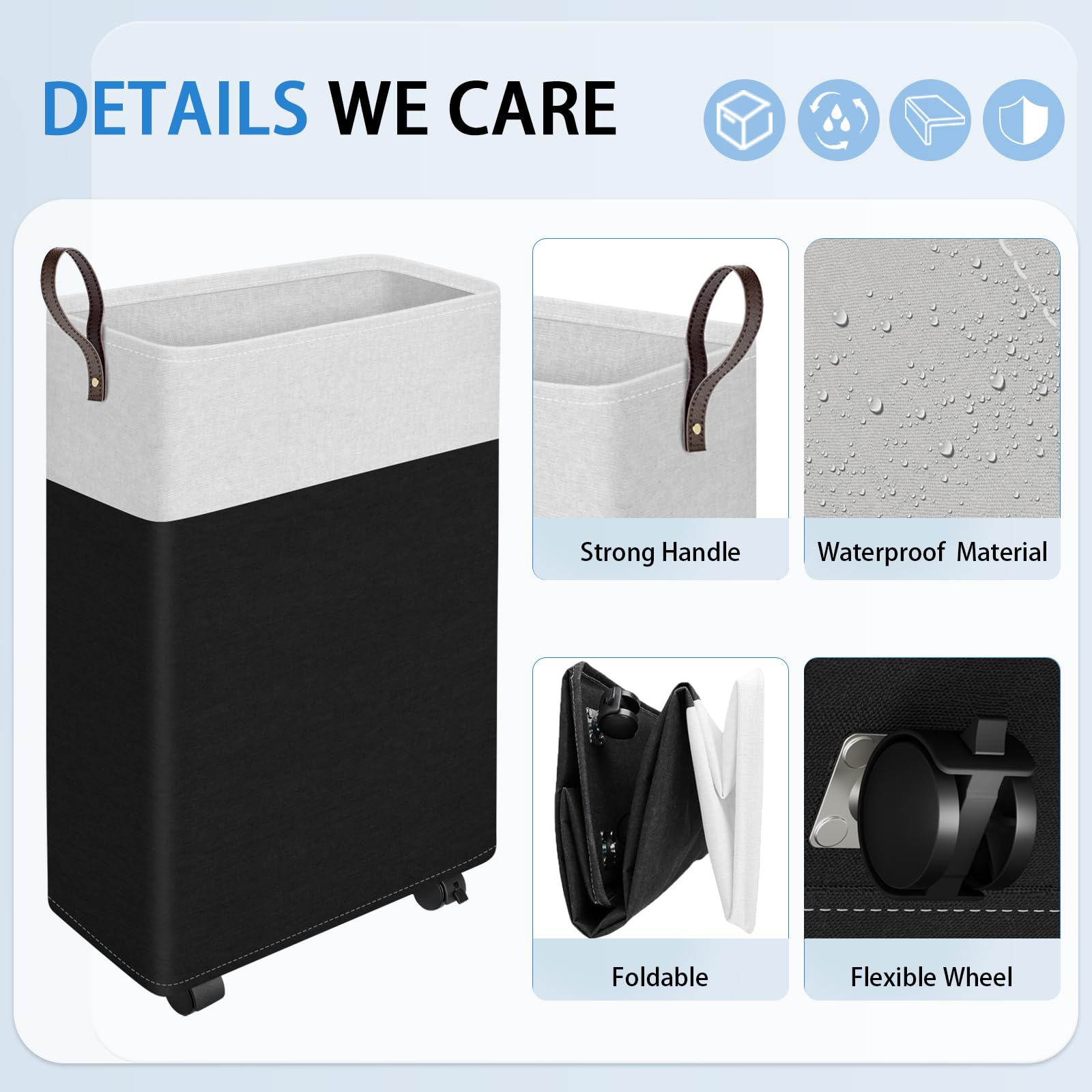 Details: HomeHacks 50L Rolling Laundry Basket with Wheels, Collapsible & Waterproof Laundry Hamper, Mobile Clothes Hamper, Storage Laundry Bins with Handles for Laundry Room, Bedroom, Bathroom & Dorm, Black