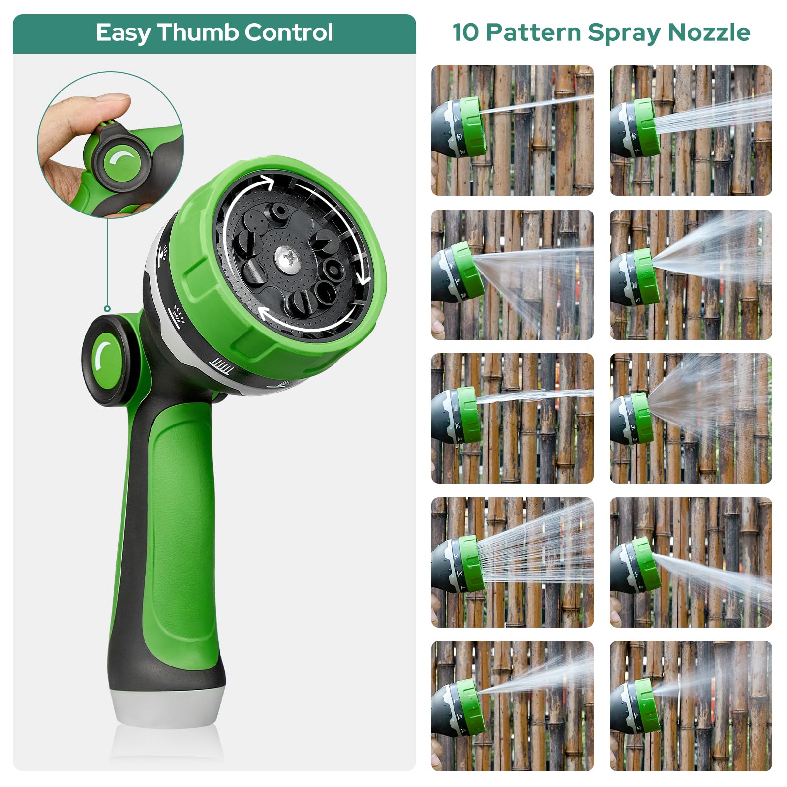 - Versatile Spray Nozzle: Equipped with a 10-pattern spray nozzle with easy thumb control, allowing you to choose the perfect watering pattern for your garden, lawn, or outdoor space with ease.