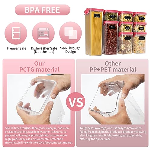 - ✔ NO CONFUSION - Except 9 PCS kitchen organization with 9 PCS red lids, you will also receive 40 pieces Labels and 1 Marker, which will help you never confuse flour with powdered sugar or baking powder with baking soda during the baking process. if you have any quality issue, 7* 24-hour one-to-one customer service. You don't need to worry about quality issues, we will provide you with a satisfactory reply.