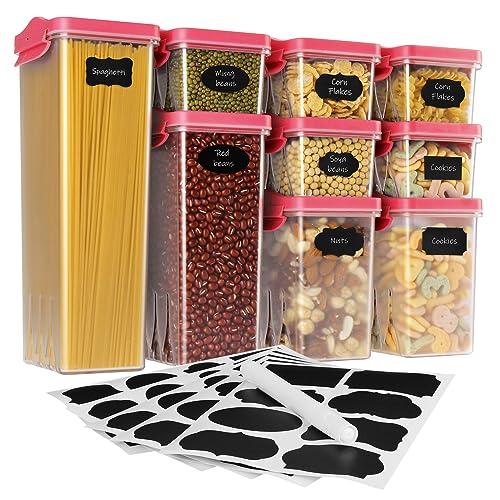 HOMER Food Storage Containers with Lids Airtight - 9 PCS BPA Free Plastic Containers Set for Kitchen Pantry Organize Cereal, Coffee, Pasta, Rice, Sugar, Flour - Labels & Marker