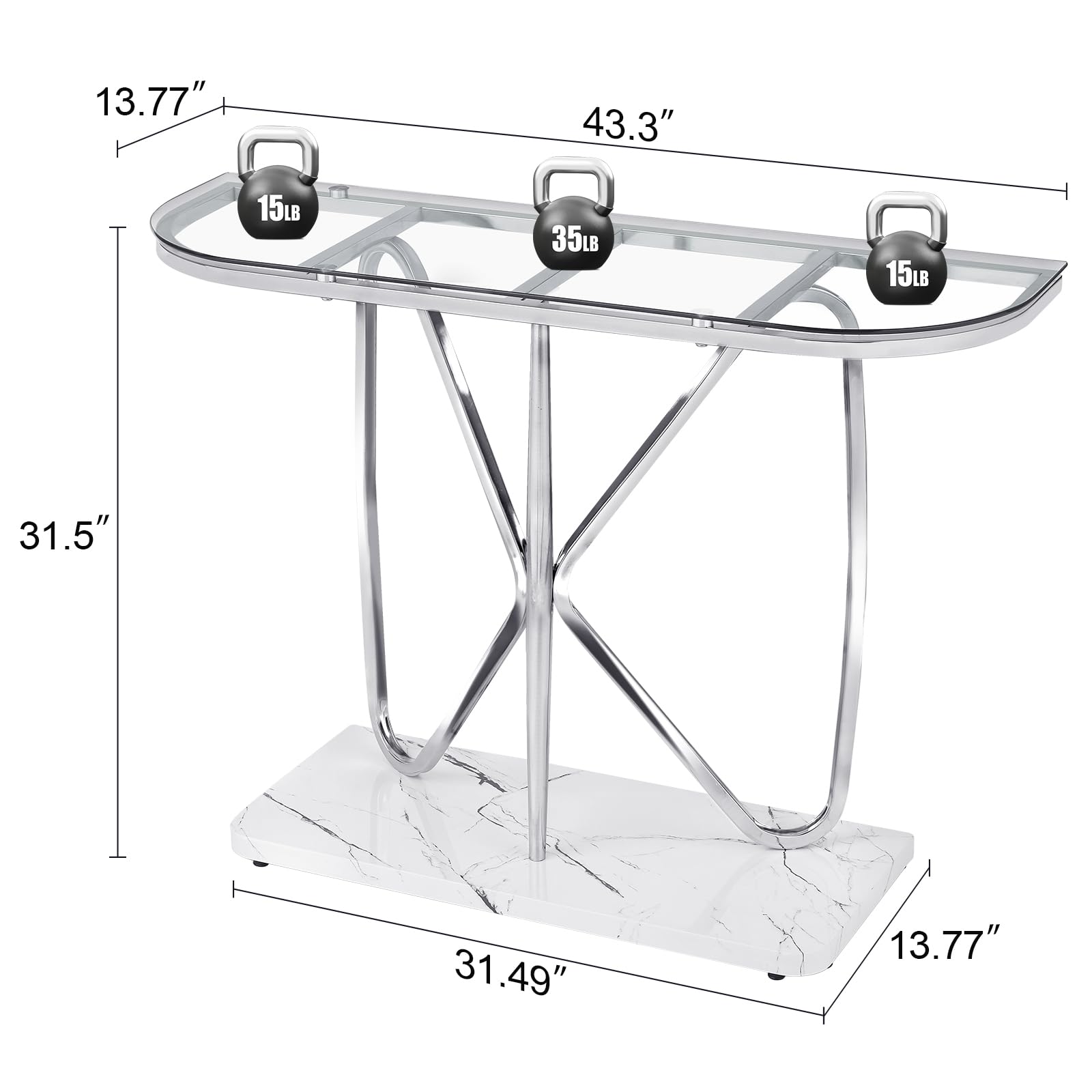 HOMISSUE Console Table, Modern Console Table with Tempered Glass Top and Chrome Frame, Glass Entryway Table with Marbling MDF Base, Chrome Console Table for Entryway, Hallway, Living Room (Silver)