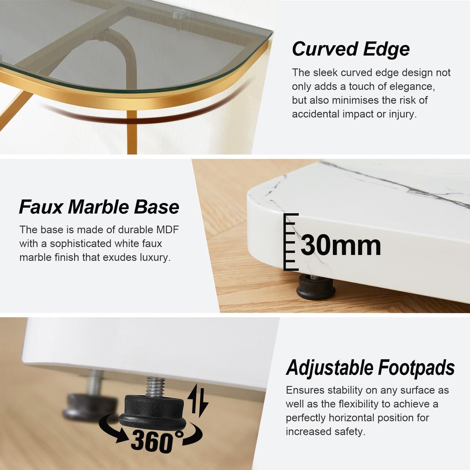 - 【Convenient maintenance】Our entryway table features 6 mm tempered glass tops that is not only easy to clean, but also but also more durable than regular glass. Simply wipe with a rag, you can removes dirt or stains effortlessly, leaving the table looking pristine. The frame chrome plating process ensures that the glass entryway table maintains its shiny luster, giving it an everlasting appeal.