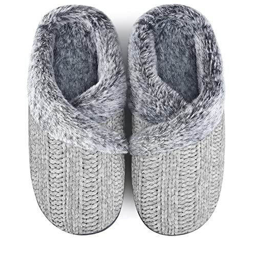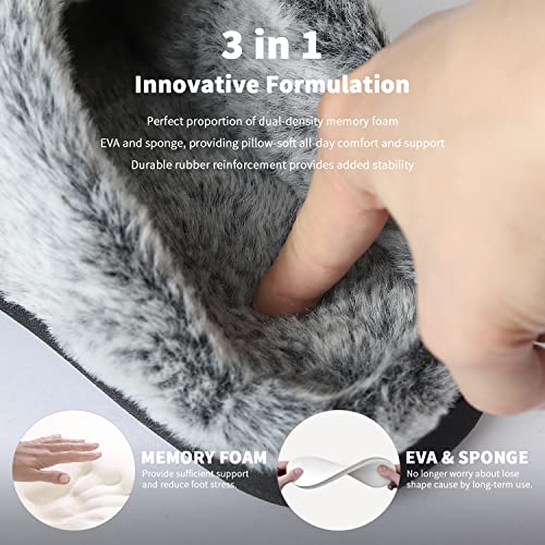 Homitem Fuzzy Slippers for Women Indoor and Outdoor Fluffy Bedroom House Shoes with Arch Support Memory Foam Winter Warm Ladeis Cute Comfy Cozy Grey Size 9-10