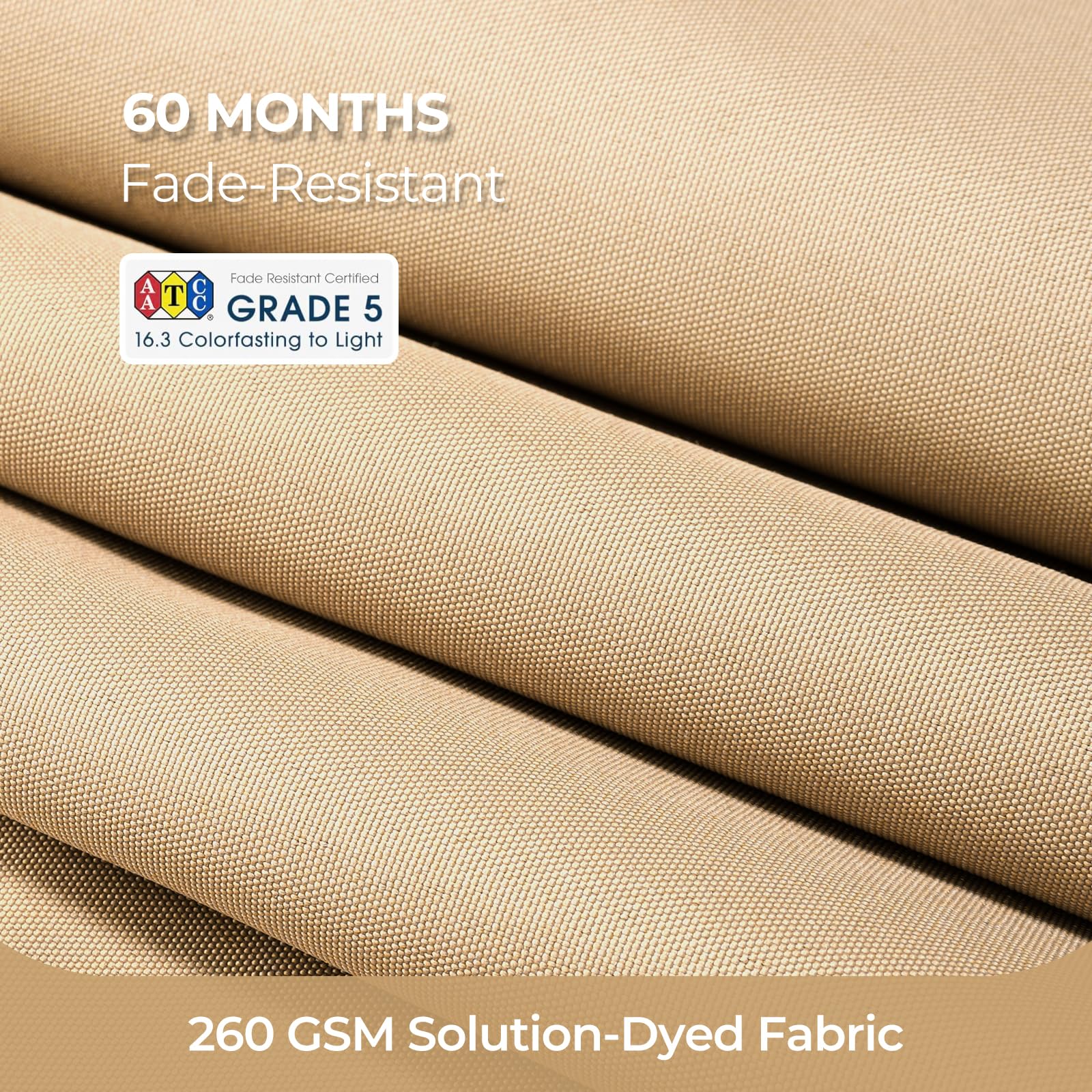 - HIGH-QUALITY MADE: Full-aluminum outdoor patio umbrella with anodized surface technology and 260GSM solution-dyed polyester with performance similar to sunbrella fabric. Beautiful and high-end, fashionable and durable, windproof and rustproof. Perfect for high-end commercial markets, humid swimming pools, windy and hot locations.