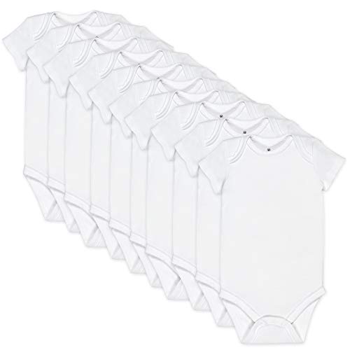 HonestBaby 10-Pack Short Sleeve Bodysuits One-Piece 100% Organic Cotton for Infant Baby Boys, Girls, Unisex, Bright White, 3-6 Months