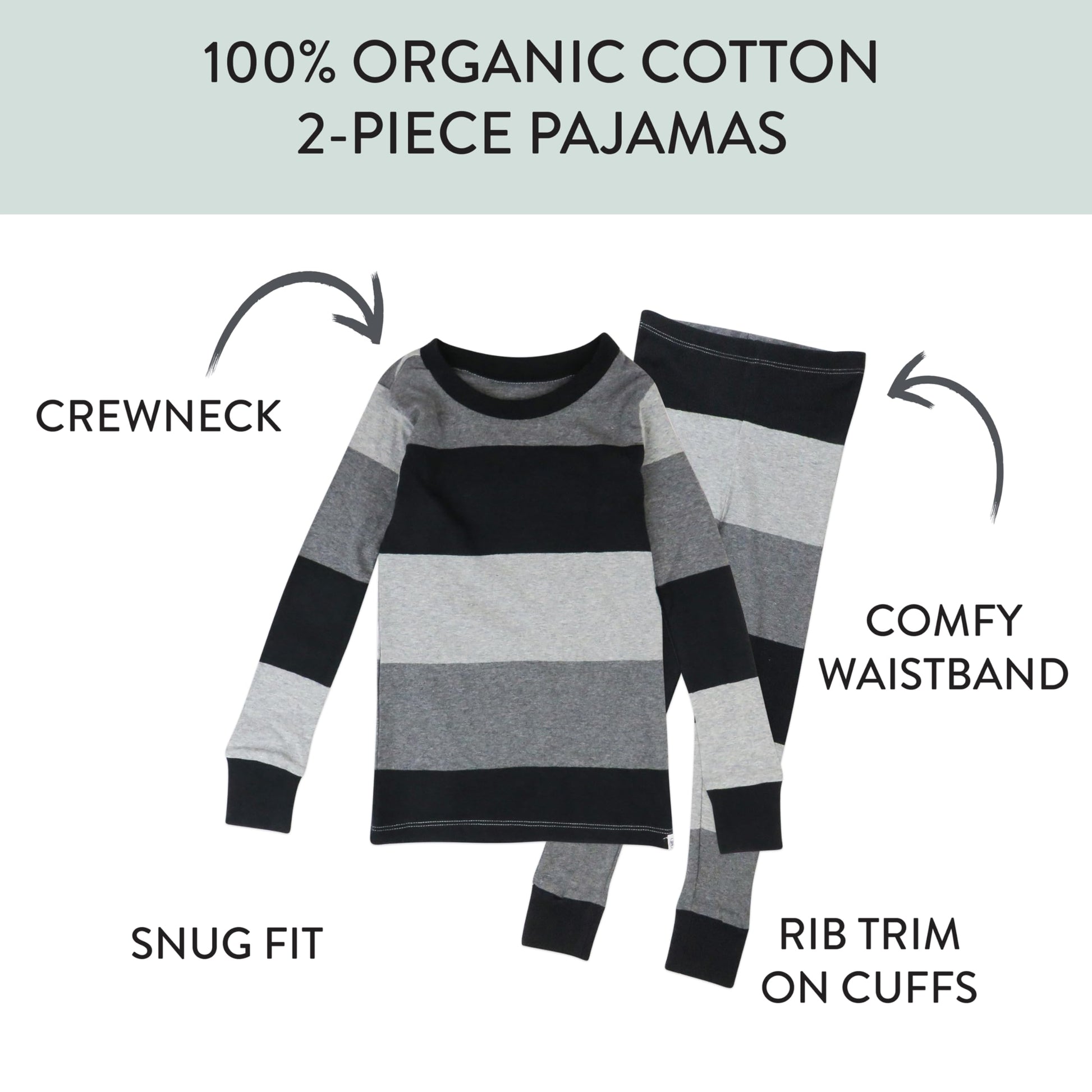 HonestBaby Celebration 2-Piece Pajamas Sleepwear PJs 100% Organic Cotton for Infant Baby and Toddler Boys & Girls, Unisex, Bold Stripe Gray Ombre, 7Y