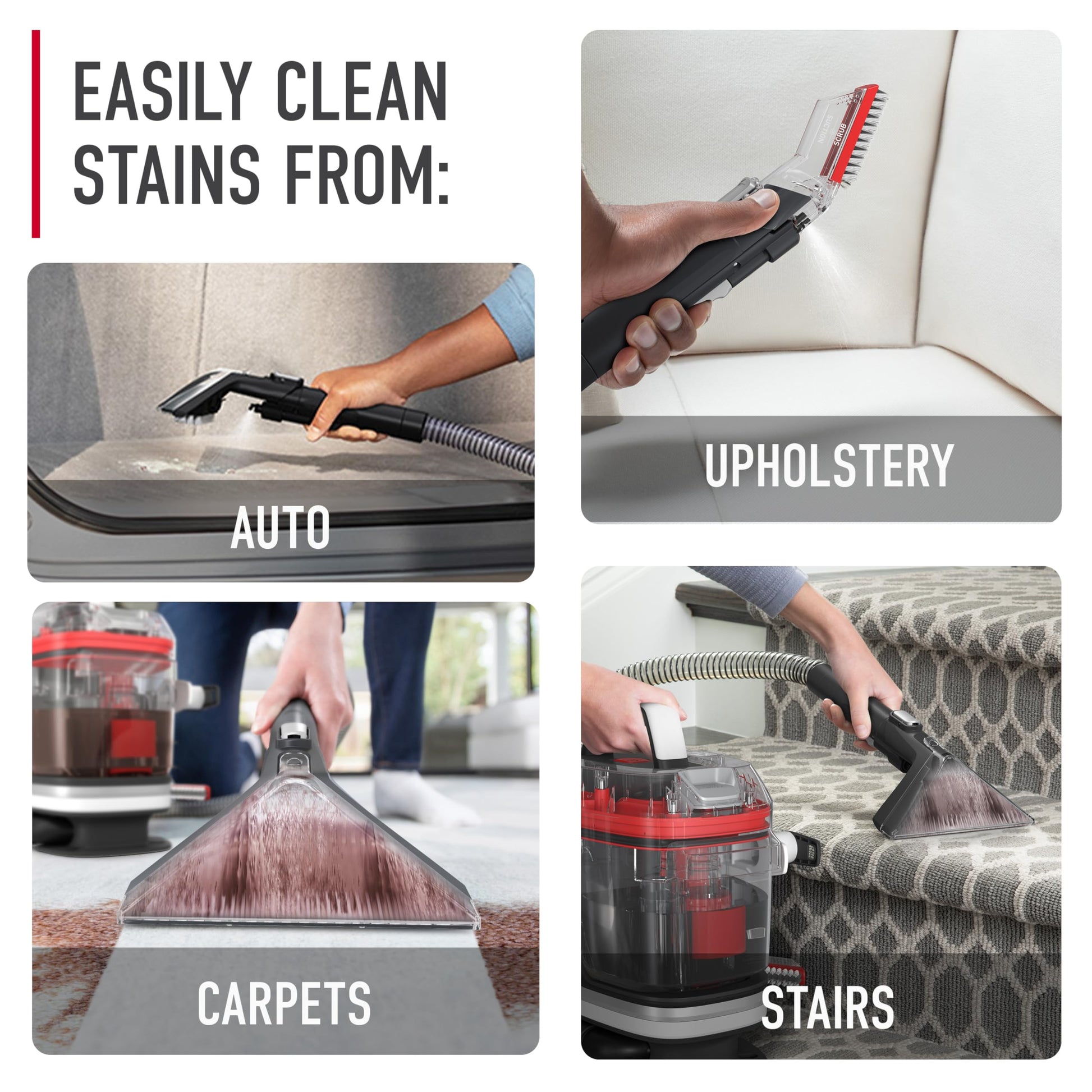 - TYPES OF MESSES: Clean tough messes like mud, wine, pet messes and more from carpets and upholstery.