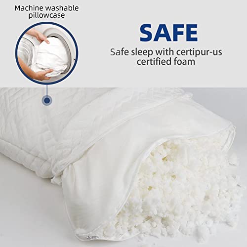 Hoperay Bed Neck Pillows for Sleeping - Bedding Shredded Memory Foam Firm Pillow - Support Side Sleeper Pillow - Adjustable Loft Washable Removable with Pillowcase