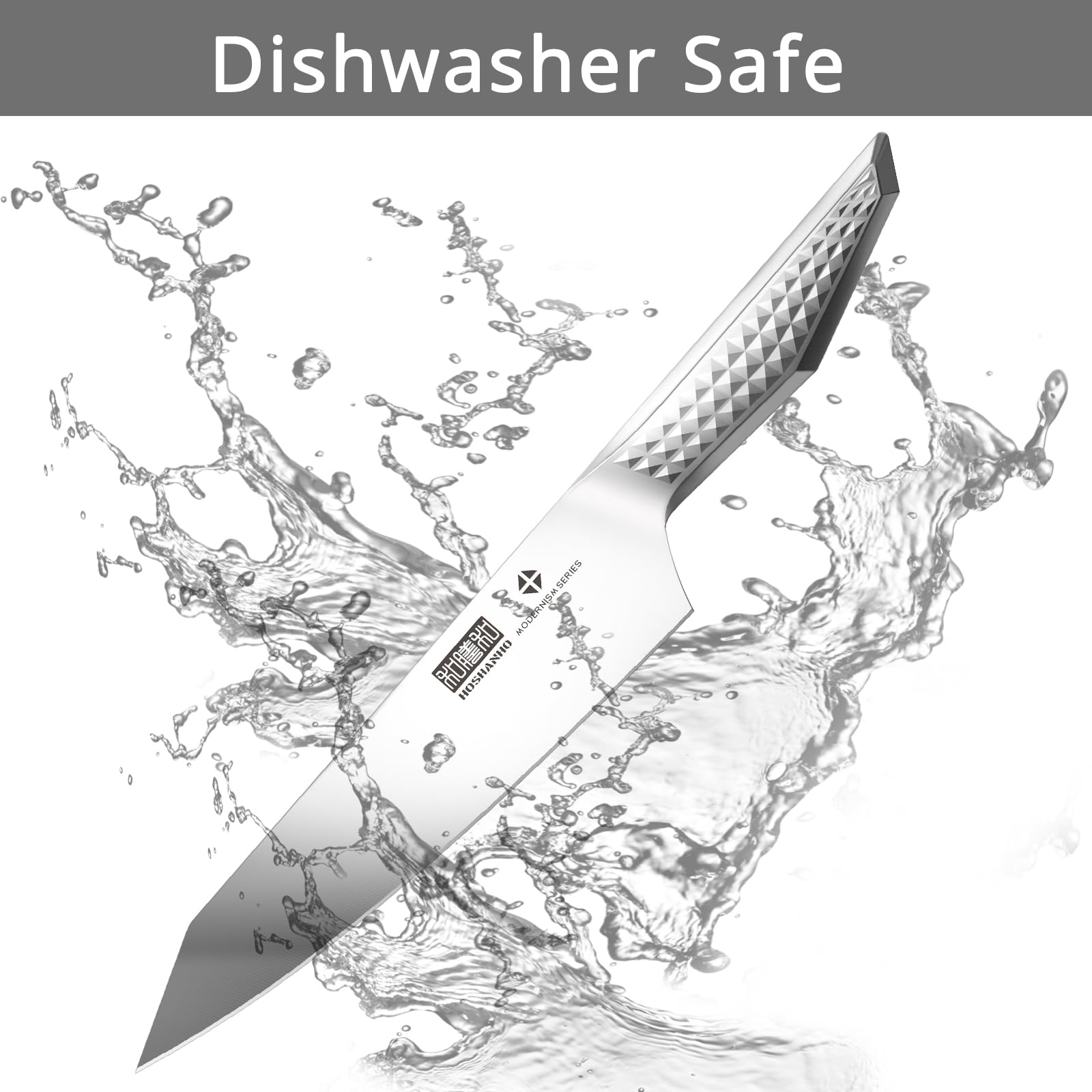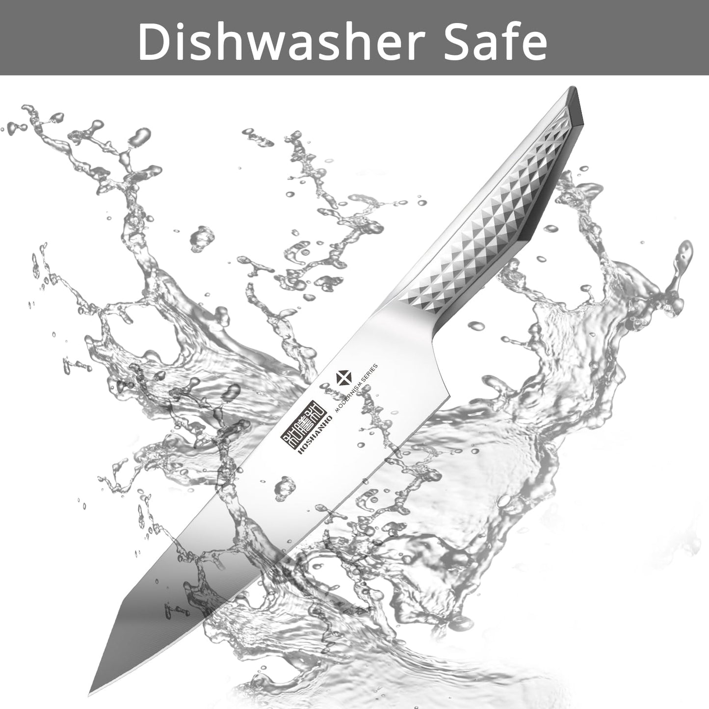 - 【Easy to Clean & Maintain】HOSHANHO knife set is treated with a special process, surface is smooth and not easy to adhere to food residue, just simply wipe it to keep it shining like new. One-piece design avoids problems of sewage residue and rust, easy to clean and store.