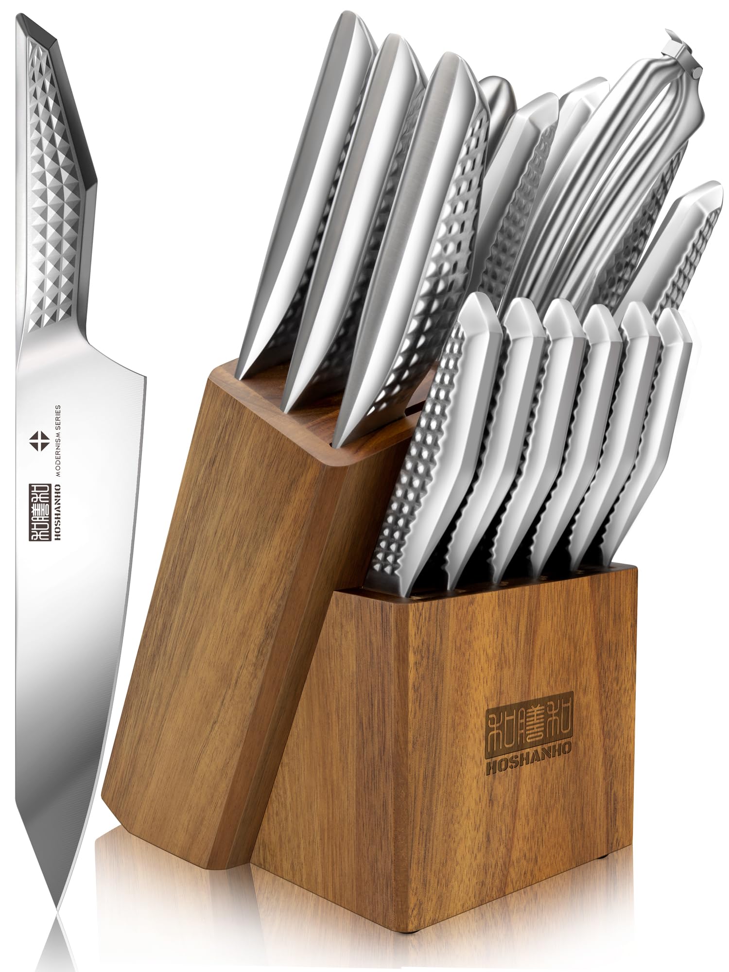 HOSHANHO Kitchen Knife Set with Block, 16-Piece Sharp Japanese Stainless Steel Chef Knife Set, Professional Knife Block Set with Sharpener