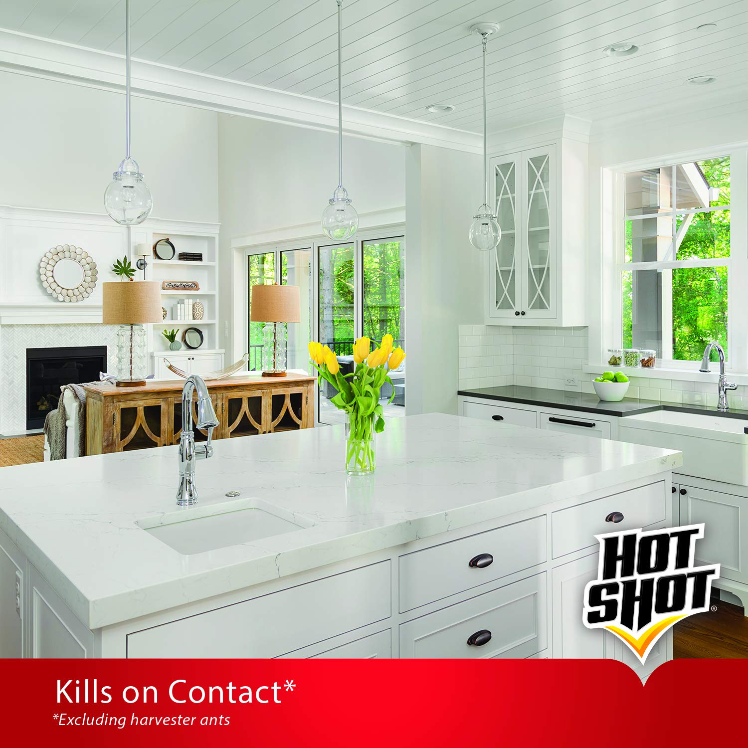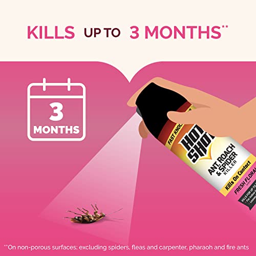 Details: From the carpool to the couch cushions, you’re the CEO of the home front. Take care of your family and take care of business, no matter where household pests rear their ugly heads. Show bugs who’s boss with Hot Shot insecticides. They’re your weapon of choice, giving you the clear advantage within your walls and at the bank.With faster knockdown than ever before, Hot Shot Ant, Roach & Spider Killer is our strongest formula yet! This fresh floral-scented formula kills insects on contact* and keeps killing for up to 3 months.** Use indoors and outdoors to kill ants, cockroaches, spiders, fleas, crickets, Asian ladybeetles, stink bugs, palmetto bugs and water bugs. Indoors this product can be used as a spot treatment along and behind baseboards, around and beneath appliances, beneath and behind sinks – without leaving behind an oily residue. Other areas where insects are often found include in cracks and crevices; around pipes and plumbing; around waste containers; and in dark corners of rooms, cabinets and closets.*Excluding harvester ants.**On non-porous surfaces; excluding spiders, fleas, and carpenter, pharaoh and fire ants.