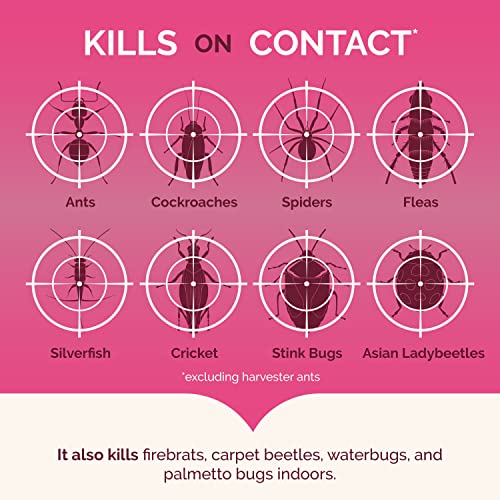 - KILLS INSECTS INDOORS: Controls ants (excluding harvester ants), cockroaches, spiders, fleas, silverfish, firebrats, crickets, Asian ladybeetles, carpet beetles, waterbugs, palmetto bugs and stink bugs indoors.