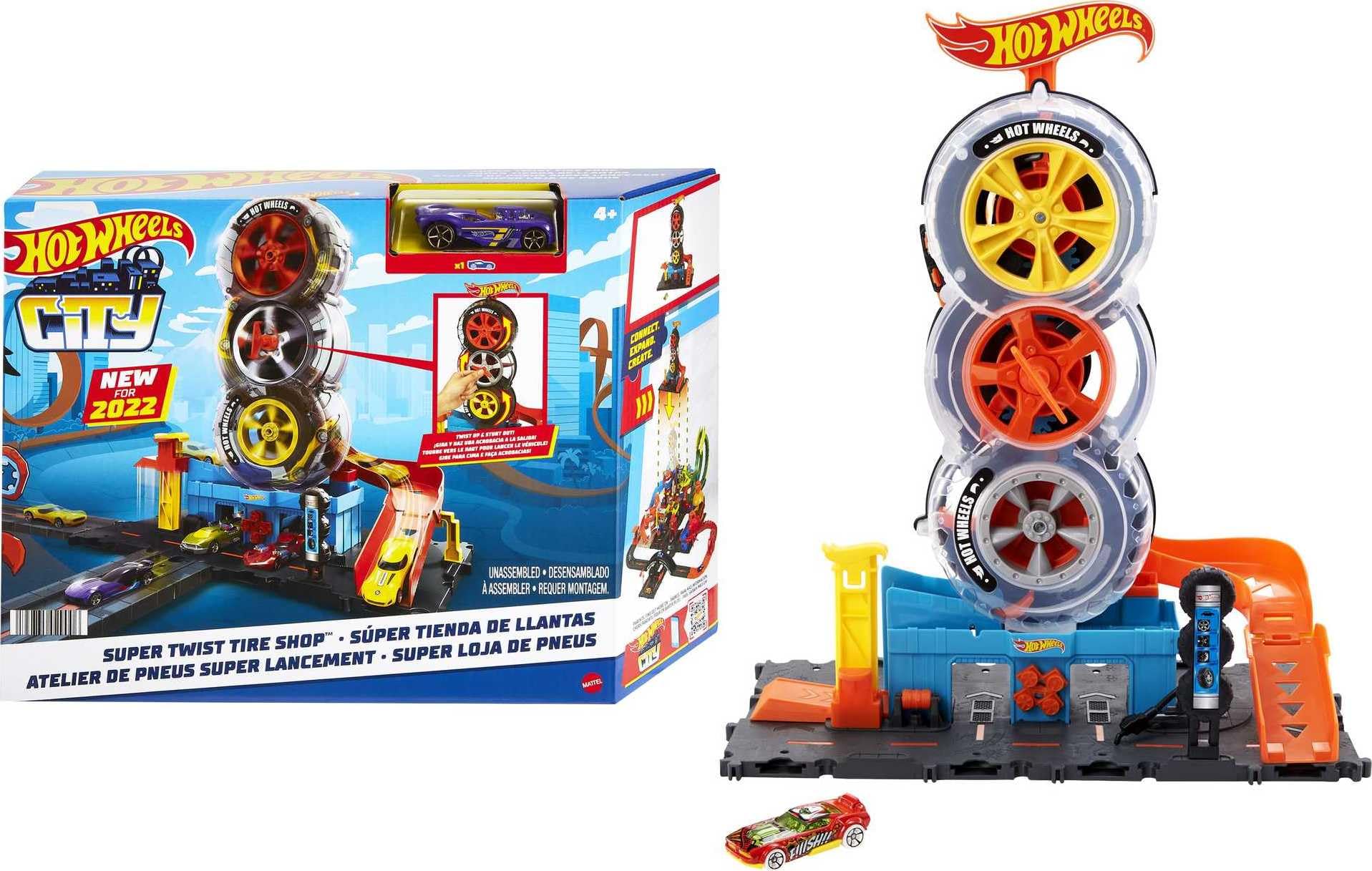 - When kids take the Hot Wheels City Super Twist Tire Shop for a spin, they discover new and exciting adventures rooted in the Hot Wheels tradition.