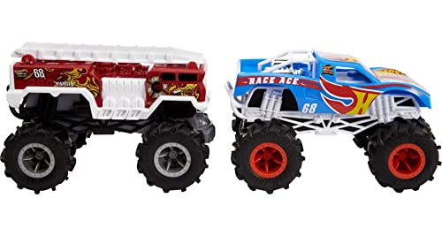 - This 2-Pack of Hot Wheels RC Monster Trucks vehicles sets up epic competition with remote-control Monster Truck legends Race Ace and HW 5-Alarm.