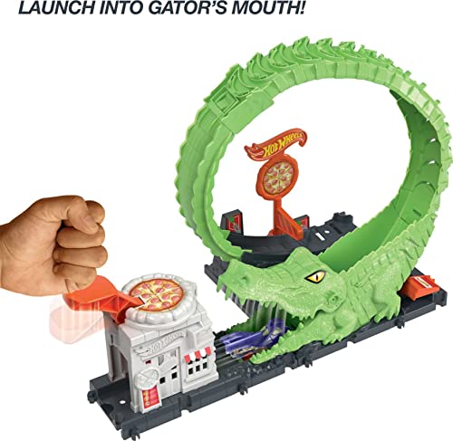 Hot Wheels Toy Car Track Set Gator Loop Attack Playset in Pizza Place with 1:64 Scale Car, Connects to Other Sets