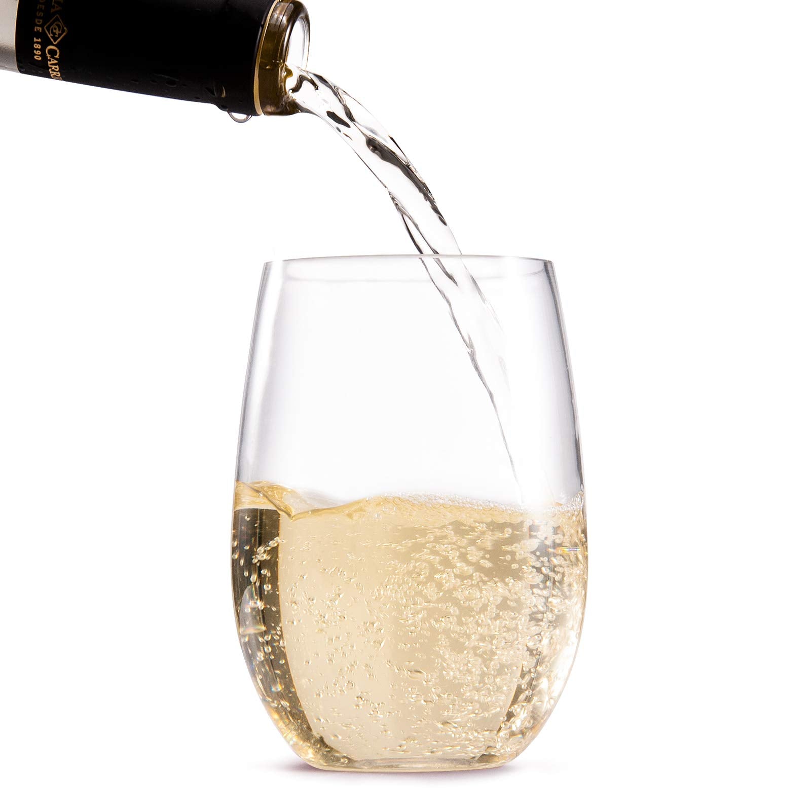 - 【Nice Gift Set】Crystal clear and glass look plastic wine glasses are suitable for cocktails, Collins, whiskey and bourbon, fresh juices, smoothies, sodas! Stemless wine glasses come in a beautiful gift box and are the perfect gift for weddings, anniversaries, special events or family bars. It‘s lightweight, also a good choice to be your outdoor wine glasses.