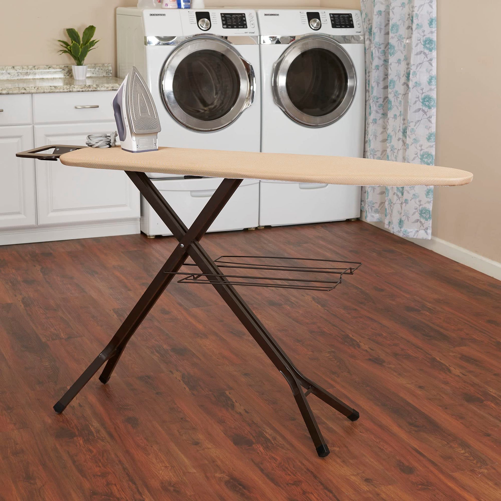 Household Essentials Bronze Deluxe Ironing Board with Iron Rest and Clothes Rack