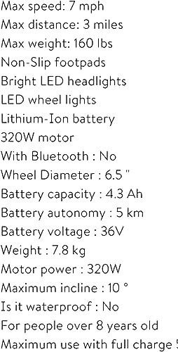 • FUN-FILLED PERFORMANCE - The Blast reaches a top speed of 7 mph and can scale inclines of up to 5 degrees thanks to its dual 160W motors outputting 320W of power. The 6.5" solid wheels provide a smooth and enjoyable ride..Operating temperature: 32-113ºF (0-45ºC)