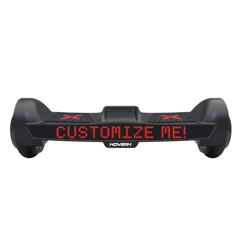 Details: Give the Hover-1 Sypher hoverboard your own personal touch! Using the Hover-1 Sypher app, you can display customized text and pictures on the large, front-facing screen that stretches the entire length of the hoverboard. The LED wheel lighting, red accent colors, and sleek black paintjob are sure to attract attention too. You can even adjust the Sypher’s sensitivity and top speed with 3 riding difficulty modes to suit your skill level. Sypher’s built-in Bluetooth speaker plays incredibly crisp audio, so you can jam out to your favorite music while you ride. The possibilities are limitless with the customizable Hover-1 Sypher!