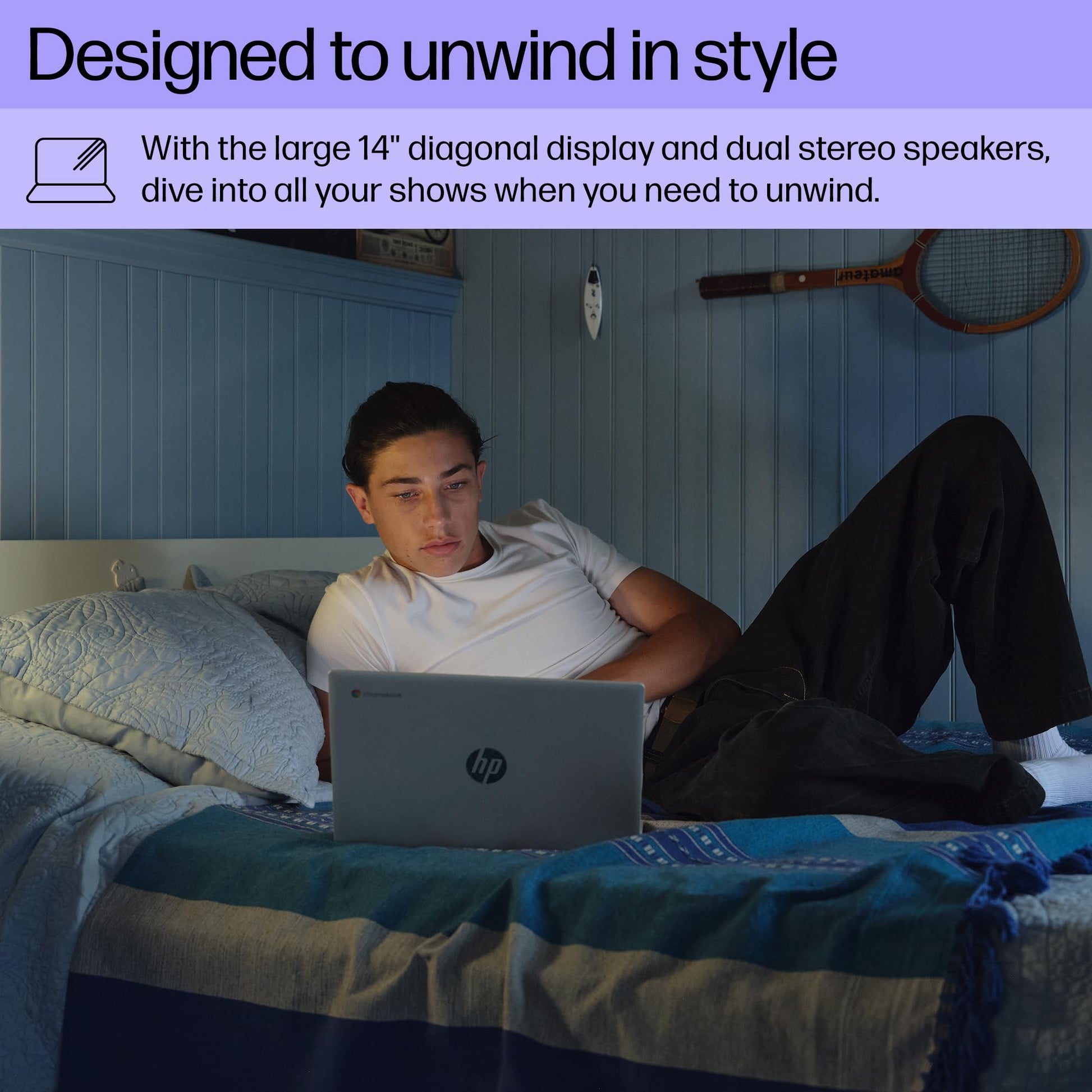 - DESIGNED TO UNWIND IN STYLE - With the large 14 inch diagonal display and dual upfiring speakers, which allow direct sound travel, you will be ready to dive into all your shows when you need to unwind