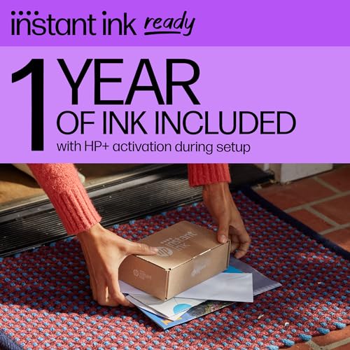 - 1 YEAR OF INK WITH HP+ ACTIVATION – Subscribe to Instant Ink and create an HP+ account to get ink delivered directly to your door before you run out. After 1 year, monthly fee applies unless cancelled, and you save up to 50%