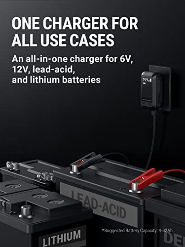 - [One For All]: This charger is compatible with either 6V or 12V sealed lead-acid, and 12V lithium-ion batteries, including deep-cycle, AGM, lifepo4, flooded, gel, wet, maintenance-free, EFB, and calcium batteries.