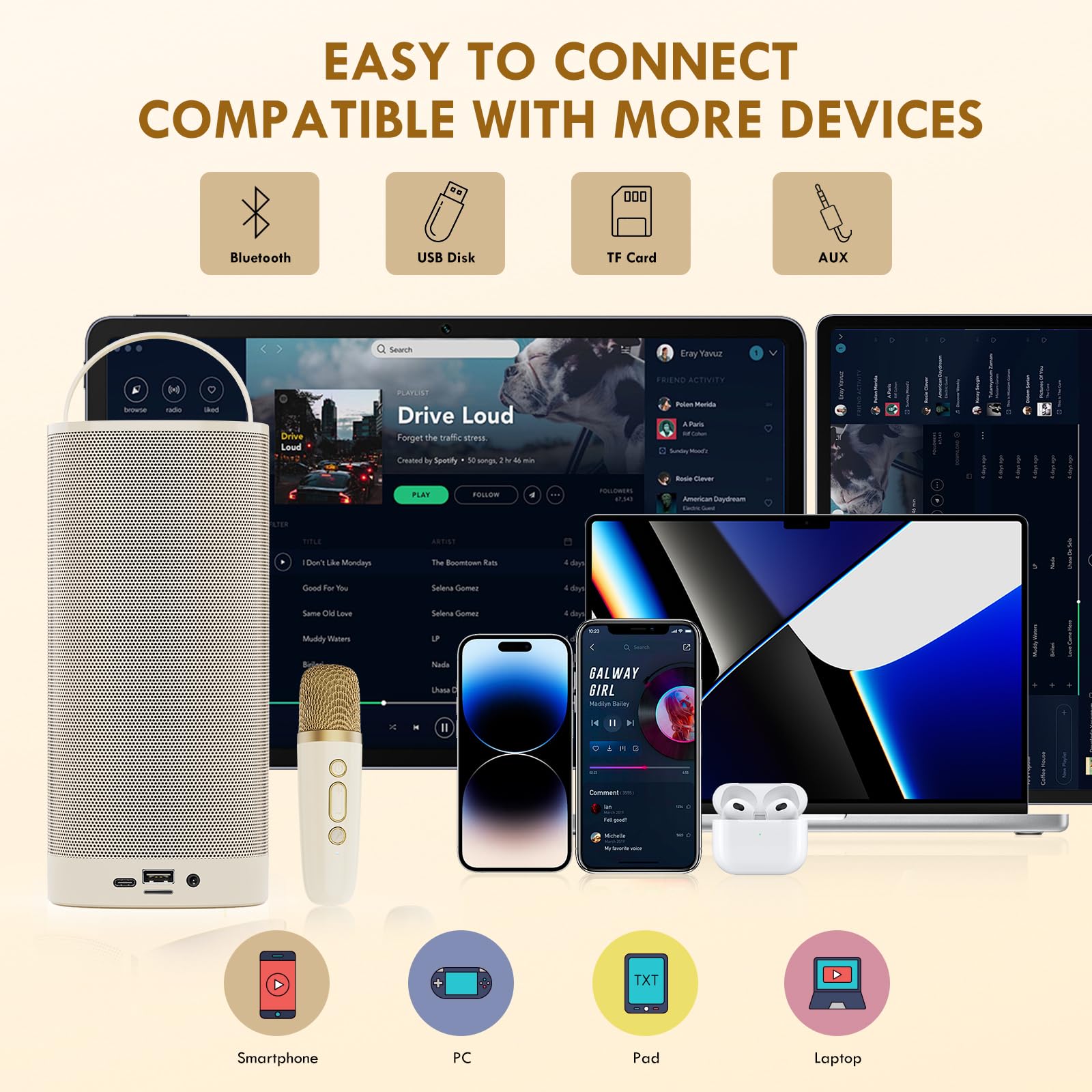 - 【Designed for Parties: The Portable Speaker】Tailor-made for your gatherings, our D31 karaoke speaker comes with a convenient carry handle and boasts over 12 hours of playtime. You can even keep it plugged in while using it, ensuring your party goes all night without missing a beat!