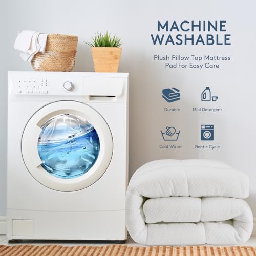 - EASY CARE PILLOW TOP COVER - High-density 40%viscose made from bamboo+60% polyester fiber made mattress pad is durable, no risk being ripped even with frequently washing. Machine wash separately in cold water. Tumble dry on low heat or line dry. Wash it regularly to keep your mattress clean and free of stains. The fitted elastic bed skirt holds the memory foam layer in place to perfectly wrap 8 to 21 inch mattress