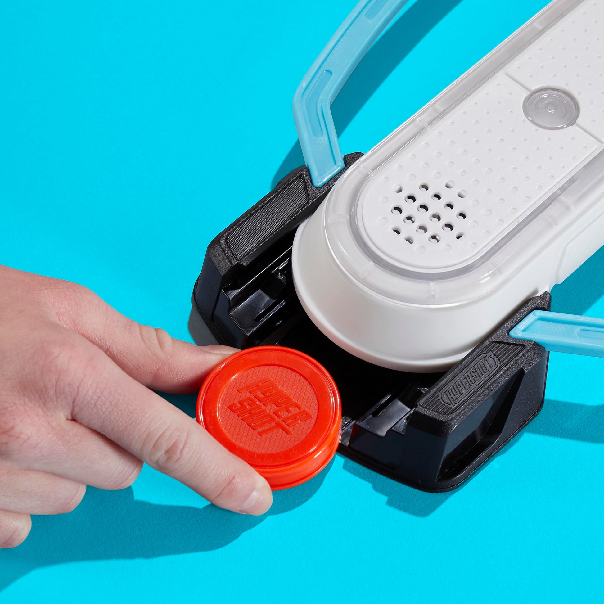 Details: The Hypershot electronic hockey game delivers the puck-slinging frenzy of air hockey in a portable tabletop game! Players compete to own the “ice,” as they each shoot their puck and try to strike the lights. Choose from 5 thrilling game modes with music, lights, and sound effects that amp up the excitement! The four 2-player game modes—Ricochet, Slap Shot, Shoot-Out, and Face-Off—feature head-to-head games played in rounds. At the end of each round, the game unit will announce the score. Or play solo and practice in Trainer mode. Some of the game modes’ rounds are timed, so get ready for adrenalin-pumping action! Looking for active kids games or fun travel games for kids? Take the up-and-moving fun of an air hockey table game on the run with this compact game! The pucks and guard rails pack neatly into the game unit’s base for easy storage. Indoor active games also make cool kids gifts for hockey fans and sports enthusiasts ages 8 and up. Hypershot, Hasbro and all related properties are trademarks of Hasbro.