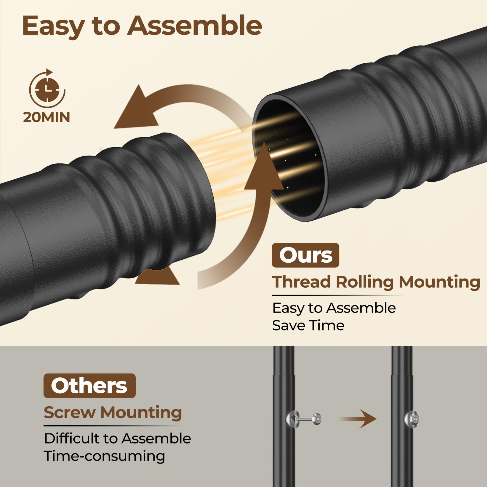 - ใ๐๐ฅ๐๐ง๐๐๐๐ ๐ผ๐จ๐จ๐๐ข๐๐ก๐ฎ ๐๐๐ฉ๐๐ค๐ใAdopting upgraded structure, the garment racks for clothes connecting each rod with thread rolling, making the portable clothes rack screws together smoothly, which saves a lot of time. Compared to other screw mounting, the HYSEYY clothing rack with wheels is faster and give a solid rigid connection. This makes the coat rack more sturdy and less wobbly.