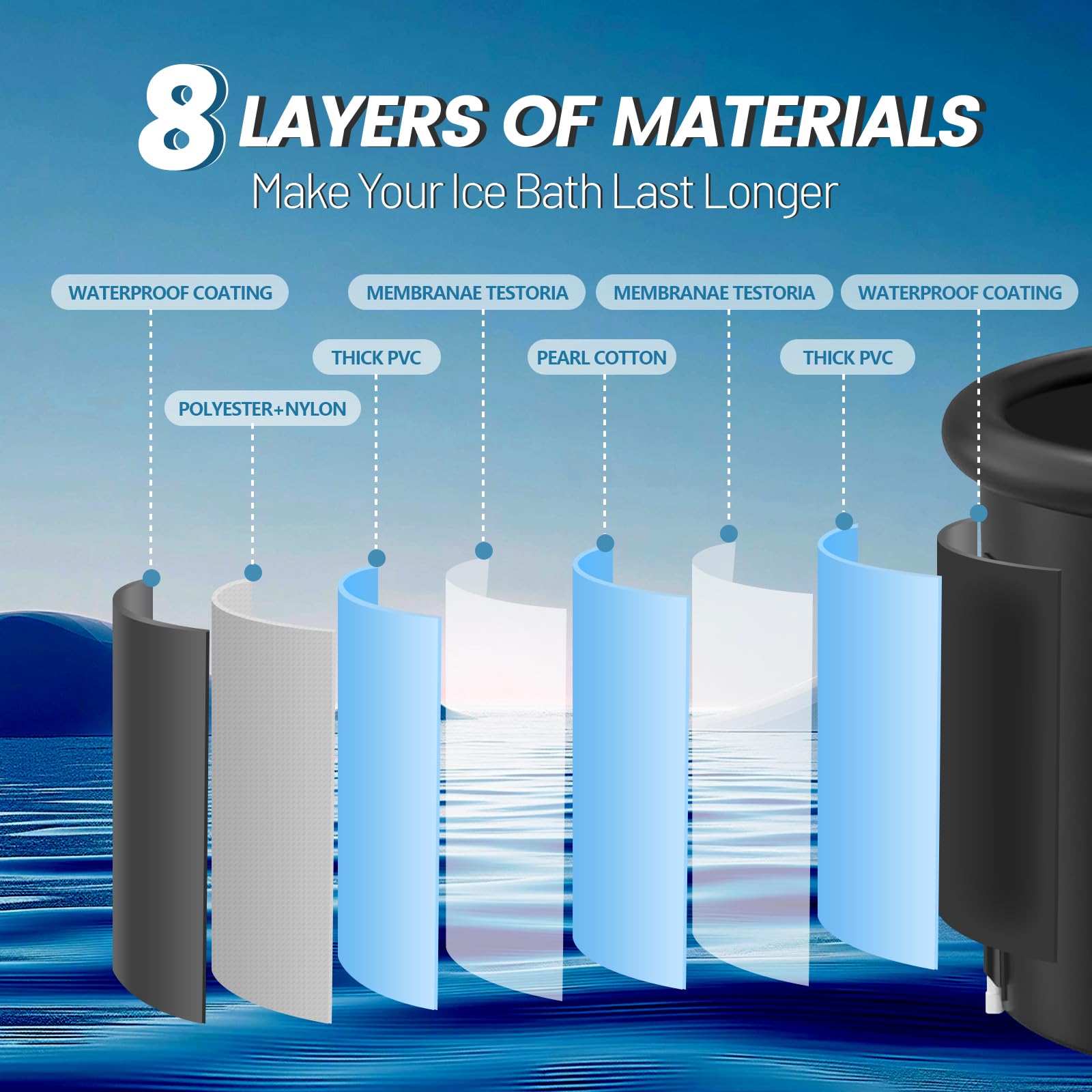- 【Convenient At-Home Therapy With The Ice Bath Tub】: Experience the therapeutic effects of cold water immersion right in your home with the cold pod portable ice bath tub with cover. This versatile, multi-layered tub is designed for both indoor and outdoor use, allowing you to enjoy the benefits of cold therapy whenever and wherever you choose.