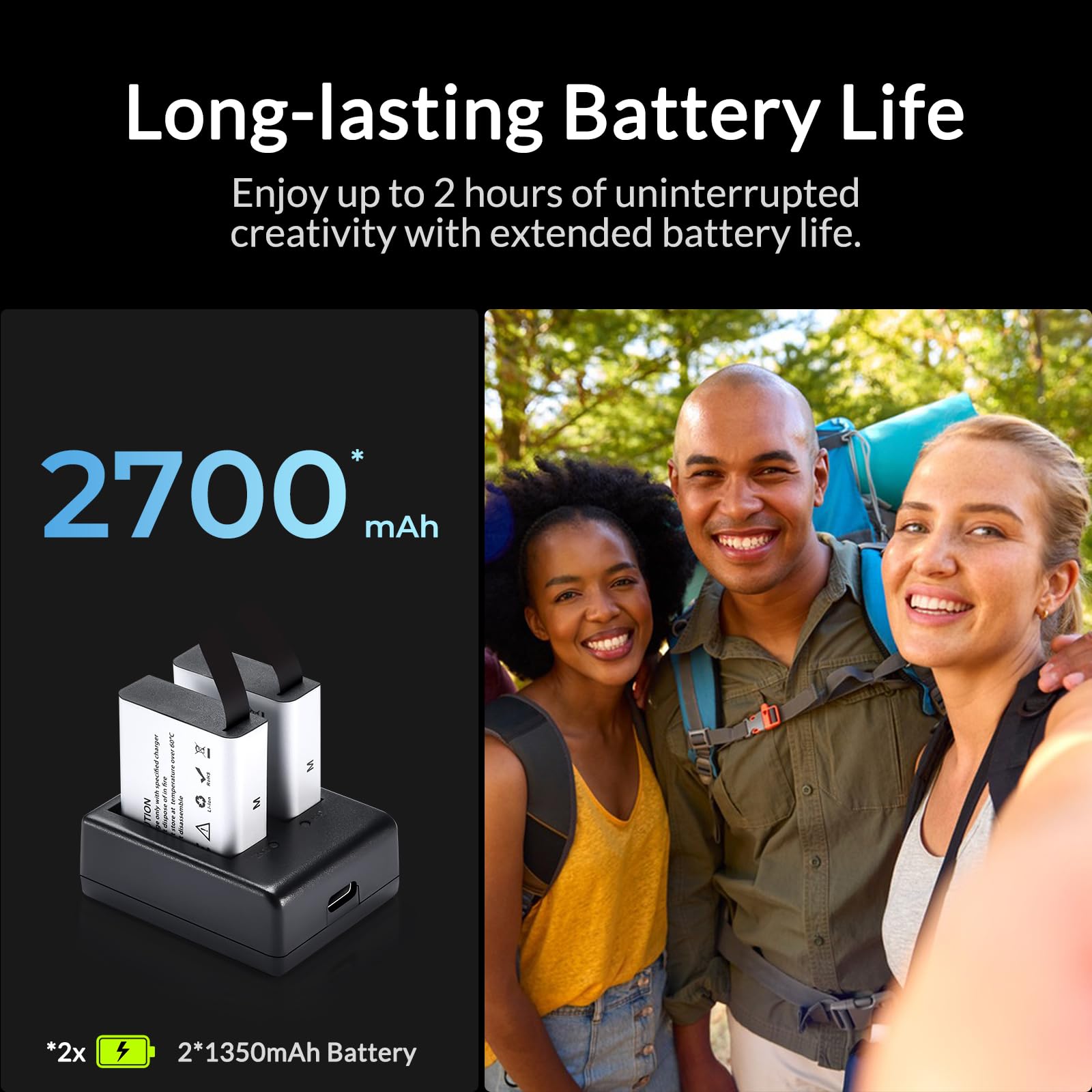 - 🔋【Wireless control from your wrist and 2 rechargeable batteries】With a wrist 2.4G wireless remote control, control of the camera, framing recording or recording video are now ultra convenient - just press the button of the remote control. Full control of your action camera with the remote control. You can capture your world in a whole new way. You will no longer worry about the recording time for your action camera, Icefox 4K action camera comes with 2 rechargeable 1350 mAh batteries.