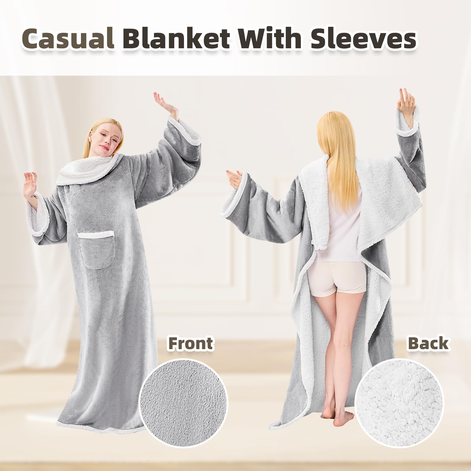 - SOFT & WARMTH: Our premium wearable blanket with long sleeves is crafted from high-quality flannel fabric and lined with sherpa fleece for ultimate relaxation. This body blanket wrap robe ensures a soft touch while being perfect for year-round use, keeping you warm and cozy