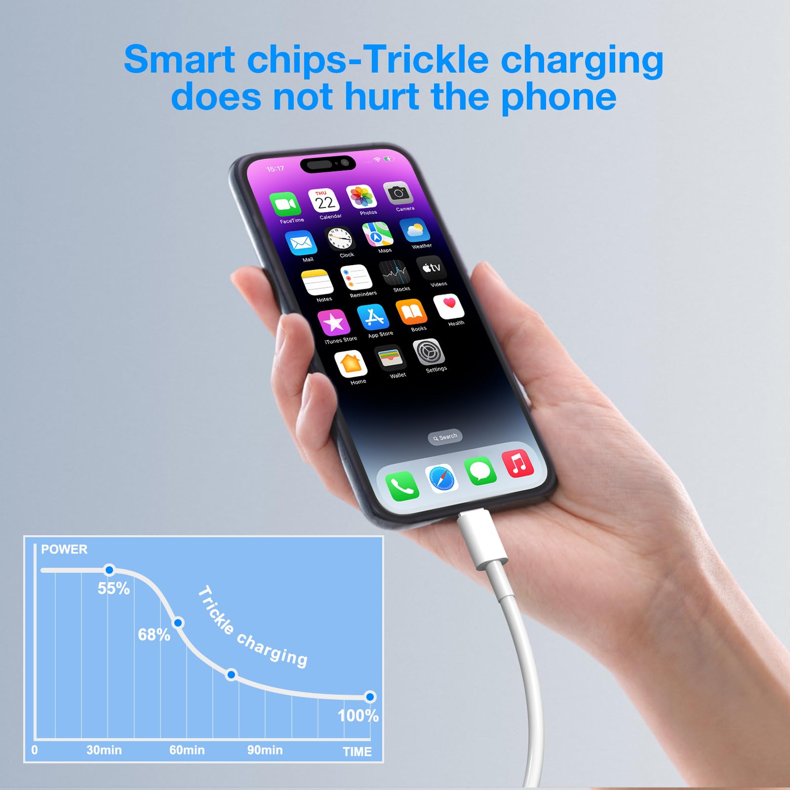 - MFi Certified: MFi Certified USB to Lightning cable, guaranteed no pop-up warnings, these iPhone fast charging cables use advanced C94 Lightning end design for fast charging, which can safely and quickly charge your iPhone device. Our USB C to USB C charging cable has been rigorously tested and certified to meet their standards, ensuring that you get a safe, reliable, and high-quality product.