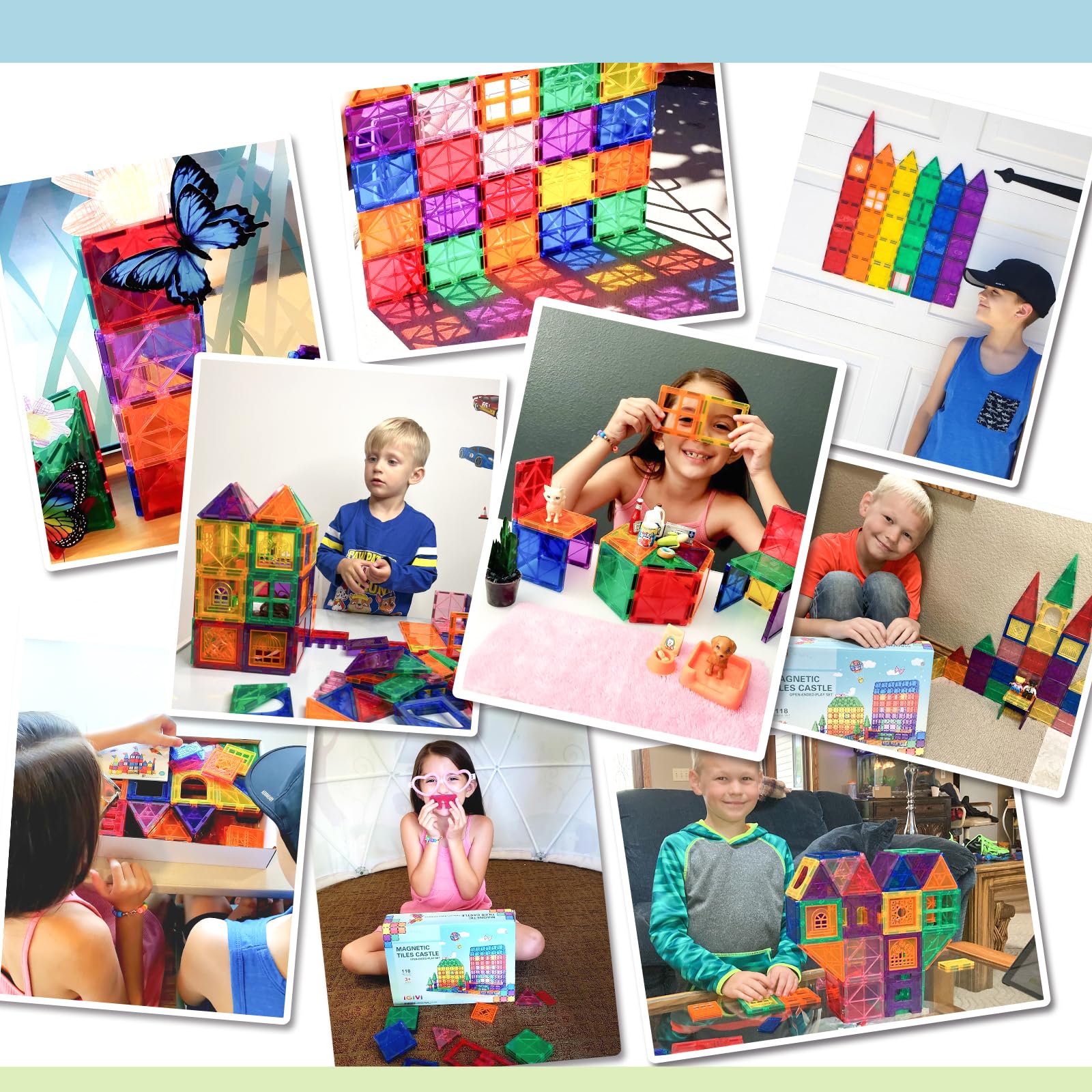 - STEM Approved Toy - Magnetic tiles allow toddlers to constantly think, try and adjust during the construction process, which can not only exercise their hand-eye coordination, but also promote the development of spatial cognitive ability and logical thinking. In the process of solving problems, kids learn to plan, predict and evaluate, laying a solid foundation for future learning and life.