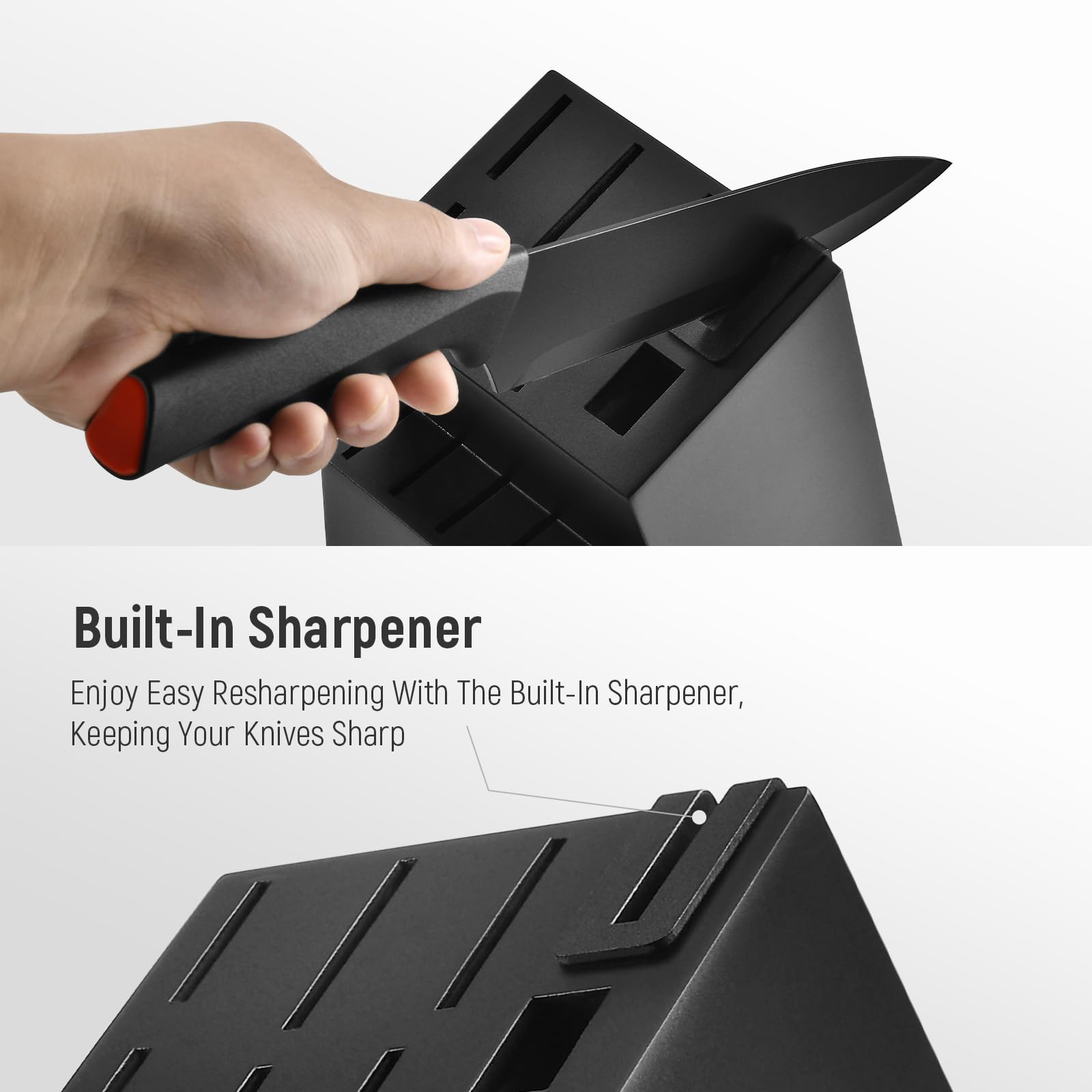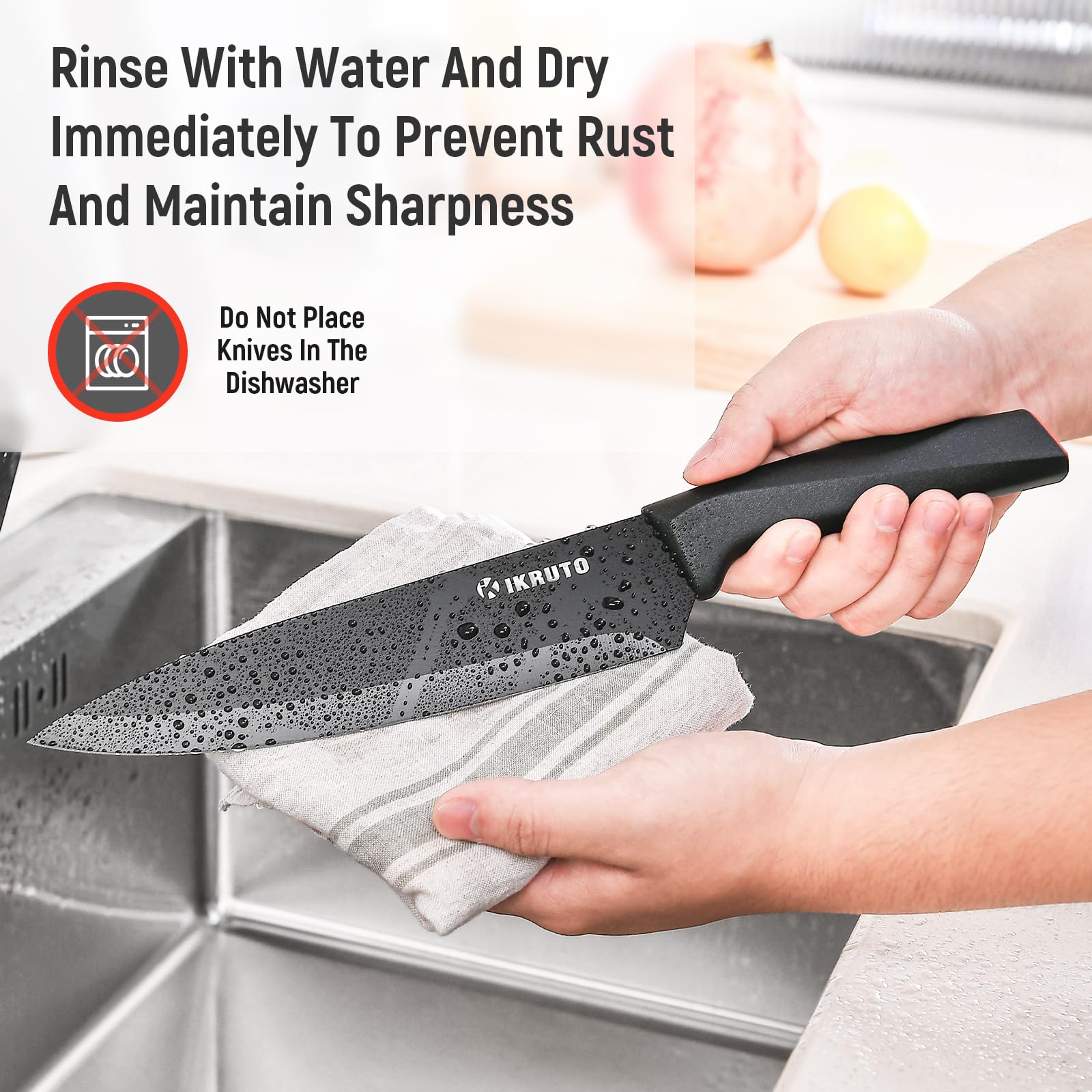 - Easy cleaning & safe storage: Designed for easy hand washing with warm soapy water. The included knife block provides safe storage, protecting blades and extending their lifespan