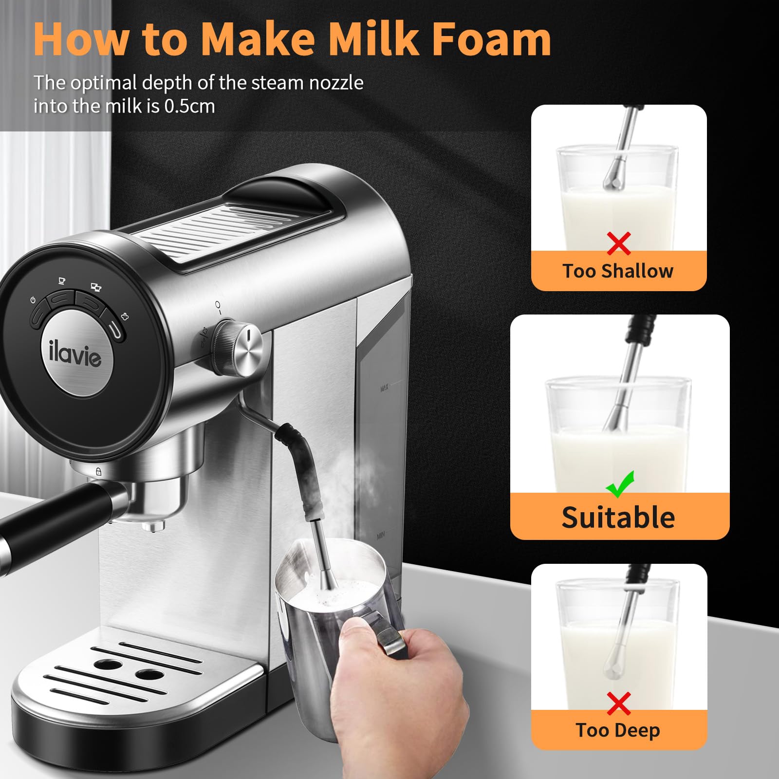 - Powerful Steam Wand: Our espresso maker can craft the great lattes, cappuccinos, and more with powerful steam wand. Designed for precision, it produces the ideal steam and froth for all your favorite milk based drinks, allowing you to achieve cafe quality microfoam with ease.