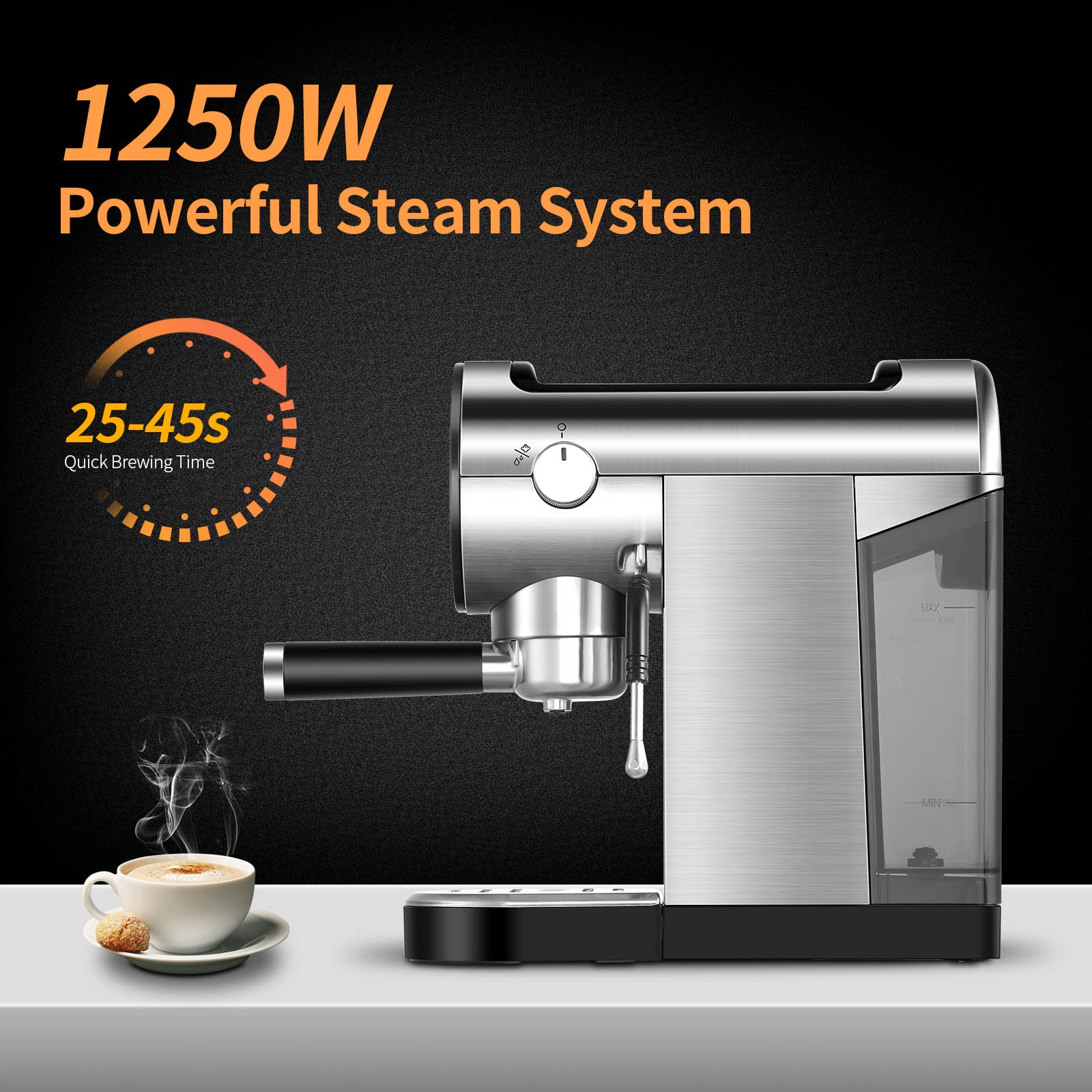 - Fast Heating System: This 1250W espresso machine delivers a powerful 20 Bar pressure, allowing you to extract single or double cup extractions and enjoy your espresso and steamed milk in a matter of minutes. Great for home, office, or as a thoughtful giving for coffee lovers.
