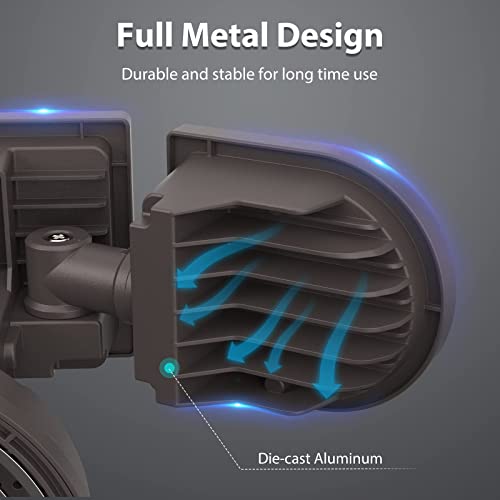- 【Full Metal Design】Made of resilient die-cast aluminum and designed with a fin-shaped back cover, the motion activated flood lights can efficiently dissipate the heat and have a greatly prolonged lifespan. Stable and reliable enough for long time use.