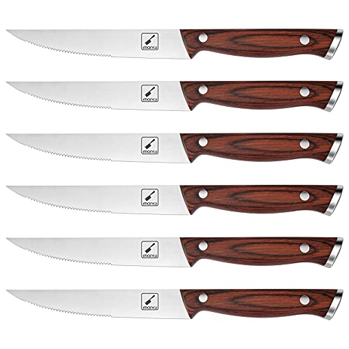 - Best Gift:Package comes with an elegant gift box and 6 pieces of steak knives, their perfect imarku Steak Knives, Steak Knives Set of 6, Japanese HC Steel Premium Serrated Steak Knife Set with Ergonomic Handle and Gift Box. Look after these knives by hand washing and drying, and they’ll keep performing well for years to come. (Don’t clean with dishwasher)