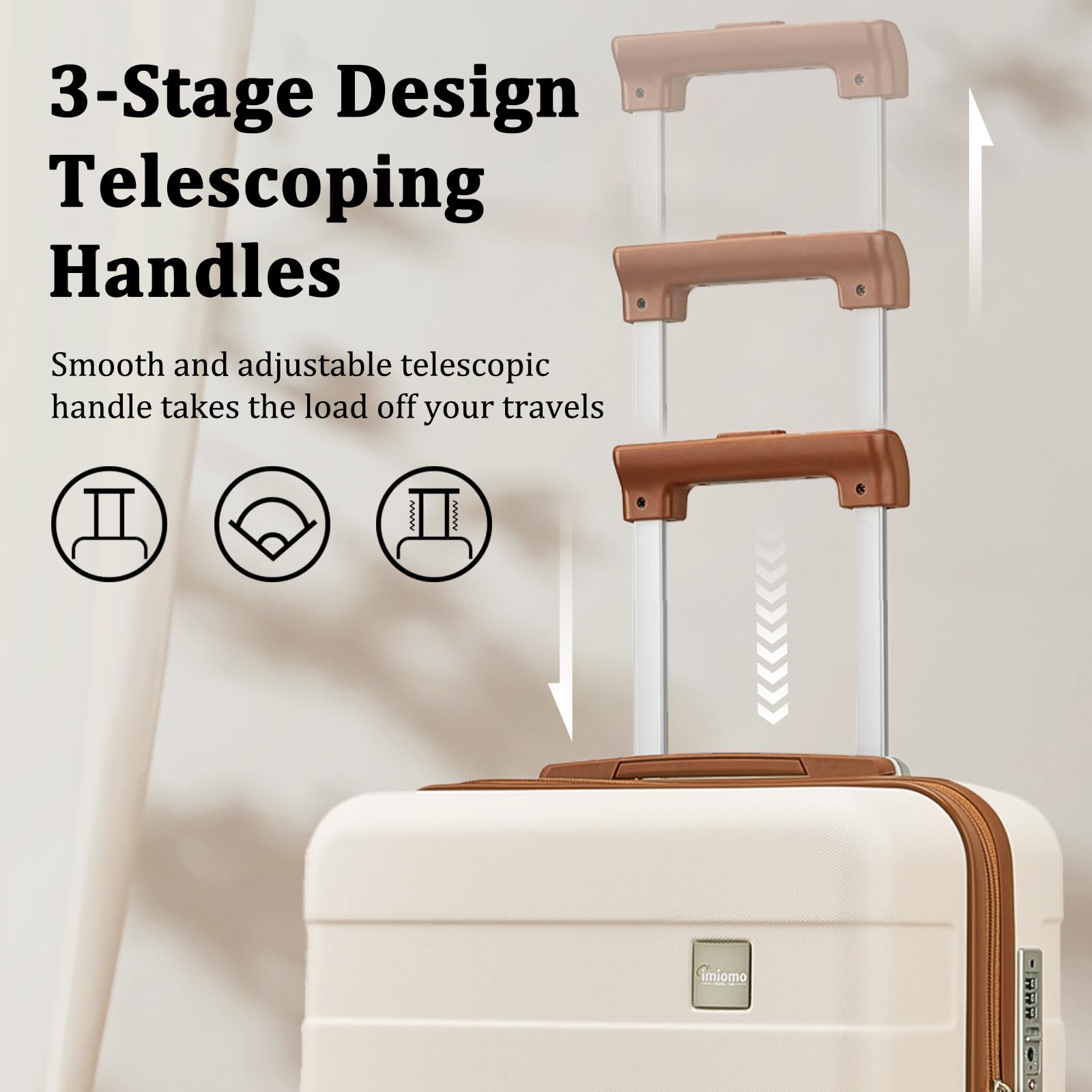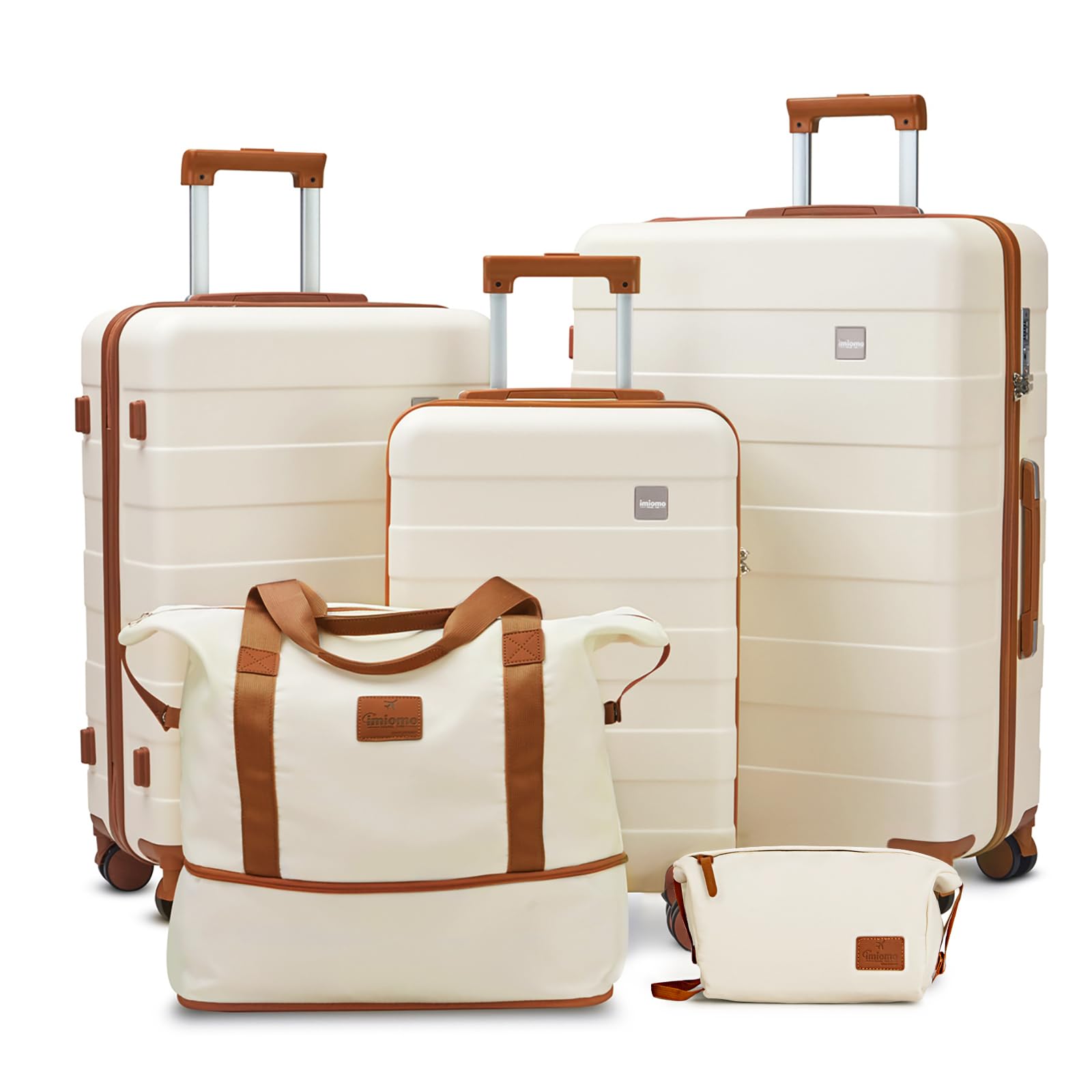 imiomo 3 Piece Luggage Sets,Suitcase with Spinner Wheels,Luggage Set Clearance for Women, Lightweight Rolling Hardside Travel Luggage with TSA Lock (Beige, 5PCS)