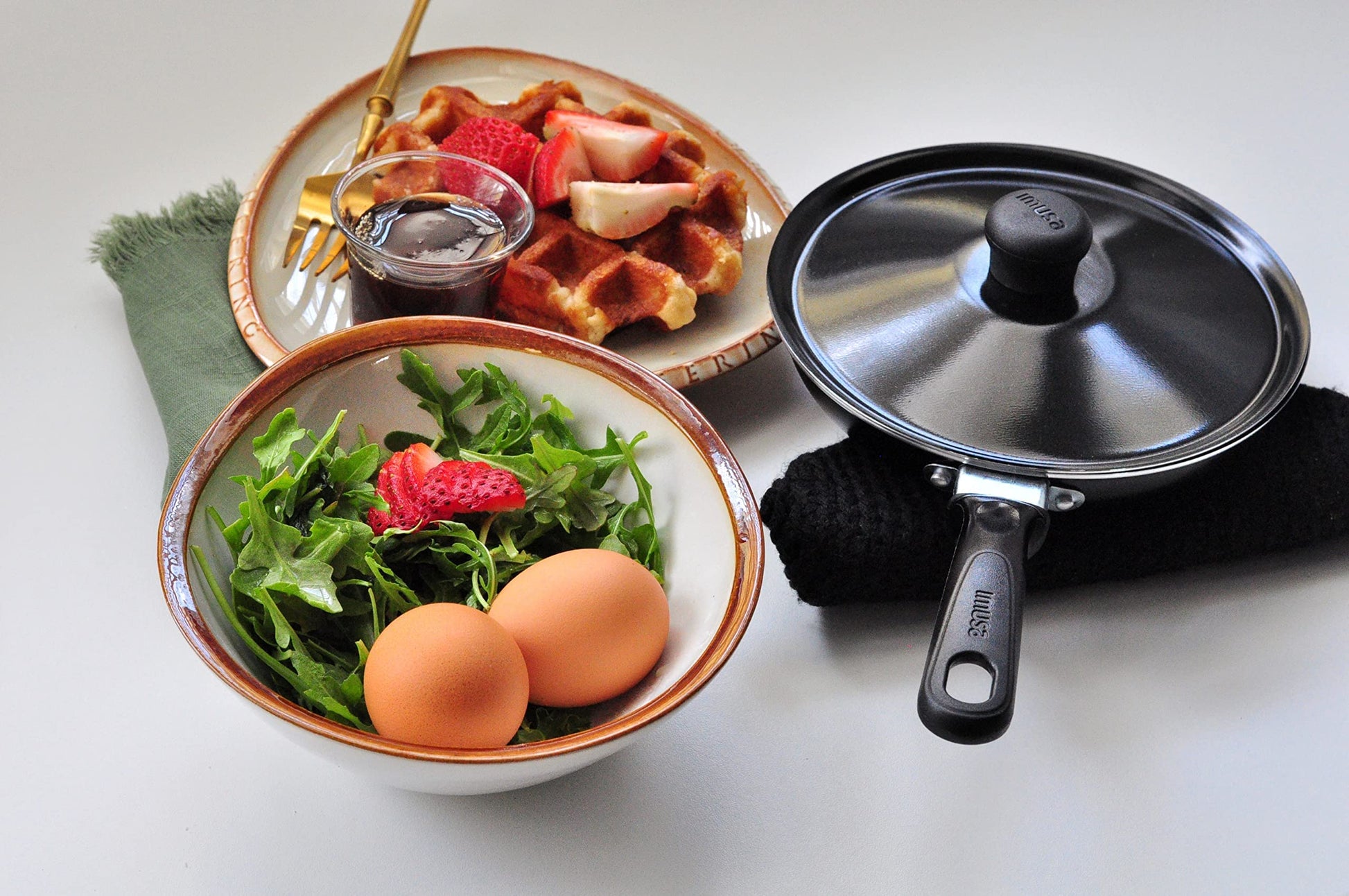 Details: The Imusa unique egg pan is ideal for making your breakfast in minutes. The nonstick cooking surface is easy to clean. Unlike other egg pans, our lid provides for a uniform cooking surface and heat distribution. Allowing you to have the perfect fried egg every time. The cool touch bakelite handles is easy to handle.