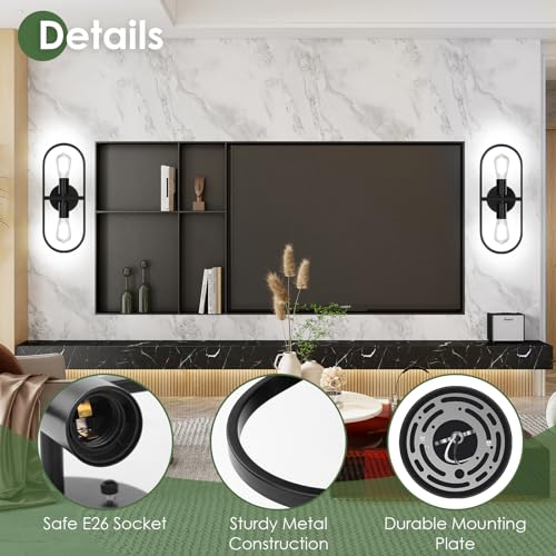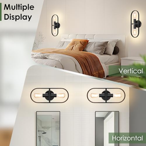 - 🌼【Stylish Look for Home】Our black wall sconces set of 2 with unique oval frame that is stand out in the normal wall light fixtures. The simple design provides a eye-catching look, and the bright lights match perfectly with the black fixture to create a excellent visual effect in any spaces. Our vintage wall sconces are the perfect decoration for your home!