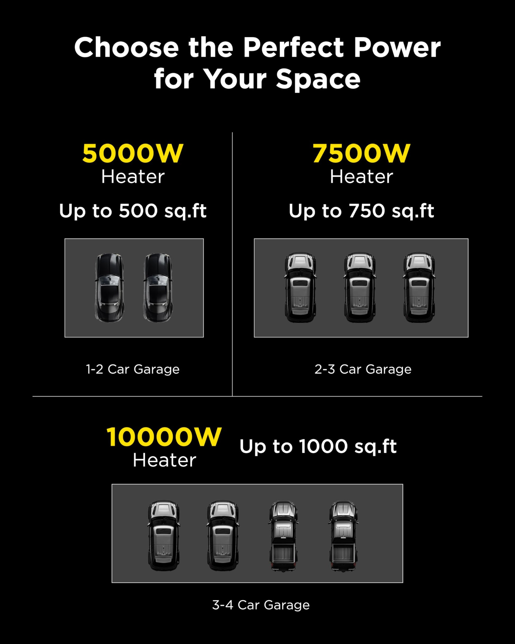 - The InoKraft garage heater features a smart ECO mode and timer function. The ECO mode automatically adjusts the operation based on ambient temperature and can even switch off to save energy. You can set a timer for auto-shutoff to reduce energy costs. Additionally, the heater comes with a built-in thermostat for customizable power settings and includes overheat protection with automatic shut-off for safety.
